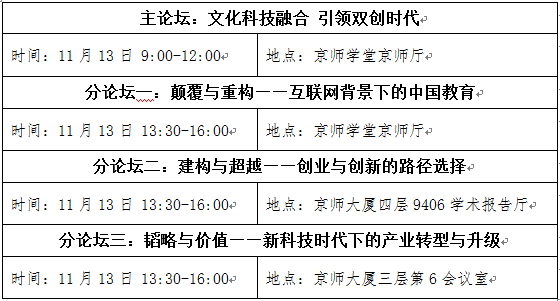 隆重举行。本界论坛将分设一个主论坛、三个分论坛,重磅邀请业界领袖、行业翘楚、知名学者高端论道,深入探讨新科技时代创新创业的路径与方略,共话中国教育产业变革的思路与方向,纵论产业转型升级的韬略与价值,塑造青年商业英才创新创业的领导力与格局观。