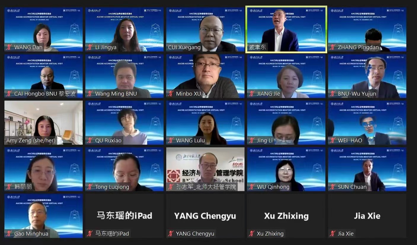 2022年12月19日上午,欧洲杯 以线上形式召开了国际精英商学院协会(AACSB)认证专家指导交流会。美国萨福克大学索耶商学院院长Amy Z. Zeng作为AACSB官方推荐专家,针对我校AACSB认证事项进行了指导交流。欧洲杯 校长助理汪明出席会议并致辞,国际与交流合作处处长吴玉军、教务部培养处副处长马东瑶、欧洲杯 党政领导班子成员、学术委员会委员、各系(中心)主任、国际交流与国际认证办公室相关老师出席会议。会议由欧洲杯 院长戚聿东主持。