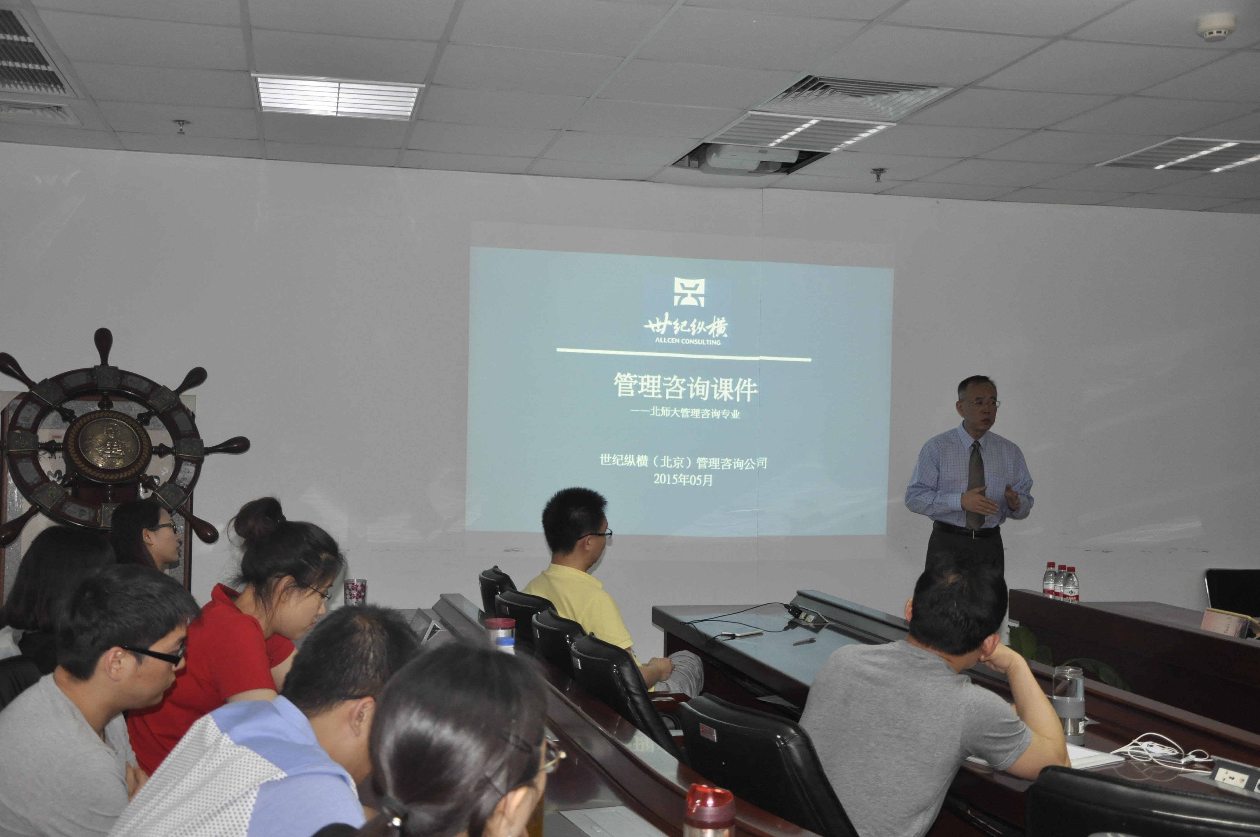 2015年5月15日晚18:00,后主楼1722室正在进行《中国管理咨询实务》系列讲座的第三讲,本次讲座邀请到的嘉宾是世纪纵横(北京)管理咨询有限公司的孙彤总经理,由于正值周五晚的高峰,孙老师同他的助理没顾得上吃晚餐就提前来到了教室,同学们满怀对管理咨询行业的期望和憧憬,与老师面对面交流。