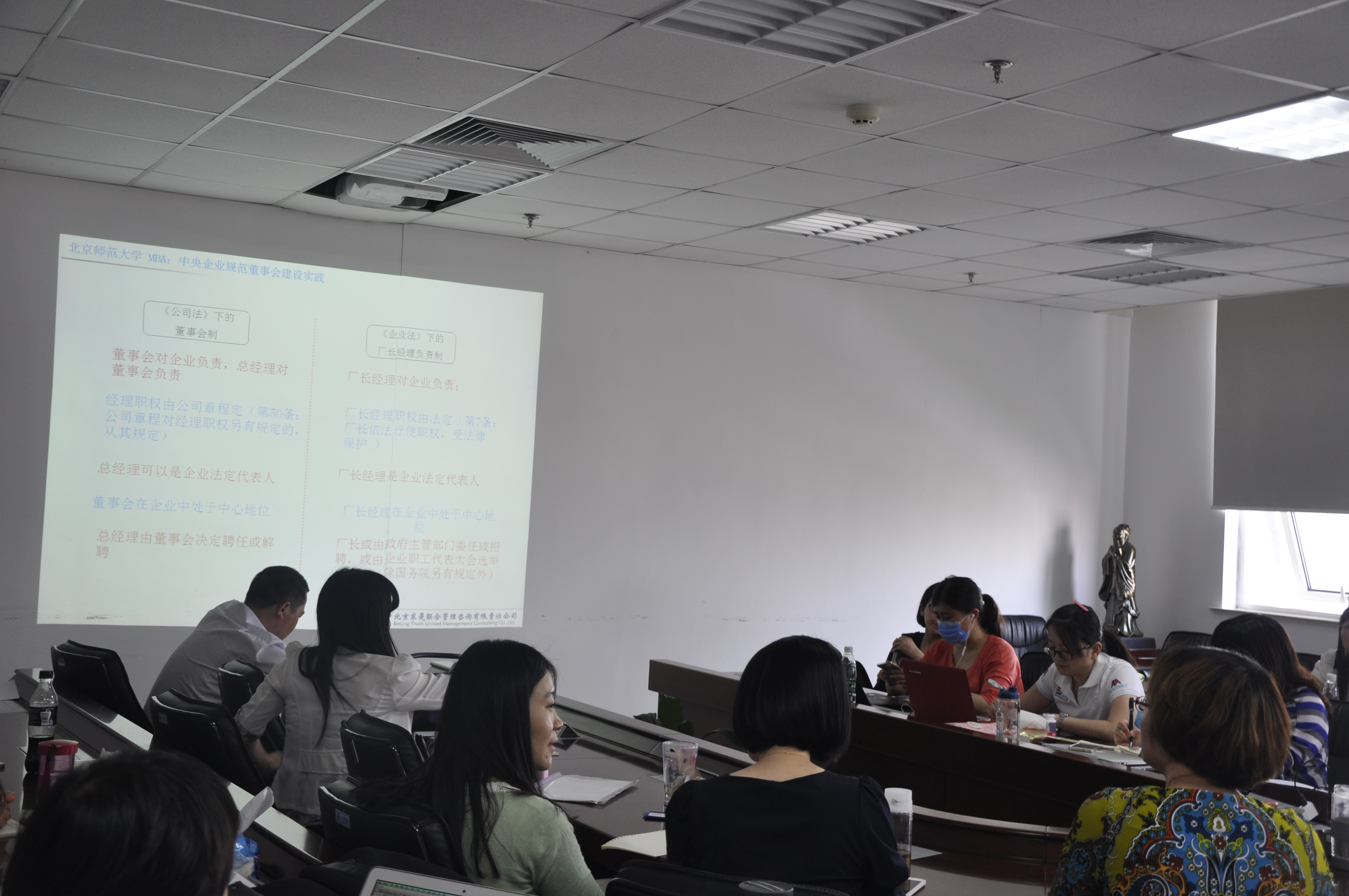 2015年5月21日下午,MBA中心邀请了北京求是联合管理咨询有限公司董事长安林老师为同学们分享《中央企业规范董事会建设实践》知识,他的助理孟田华老师是北师大MBA往届毕业生,再次回到学校与同学们一起交流,倍感亲切。