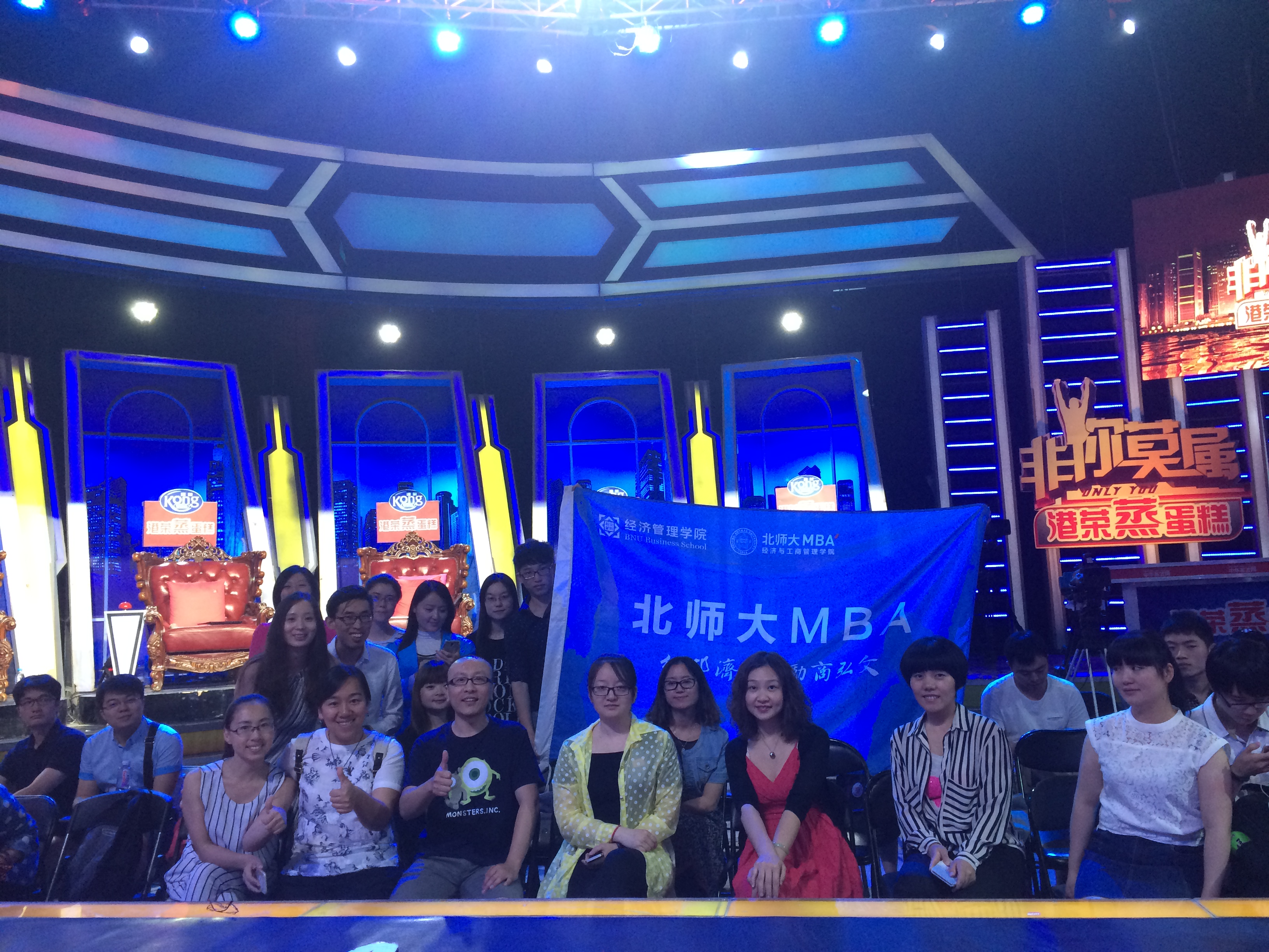 6月7日晚,应天津卫视大型职场类真人秀节目《非你莫属》栏目组的邀请,北师大、政法大学、国科大、二外、北大光华、外经贸、北航、中国传媒大学等高校的MBA同学一行60余人,在第七届北师大MBA联合会主席宗玲同学的带领下,作为特约观众赴中国传媒大学西校区参加了节目现场录制。