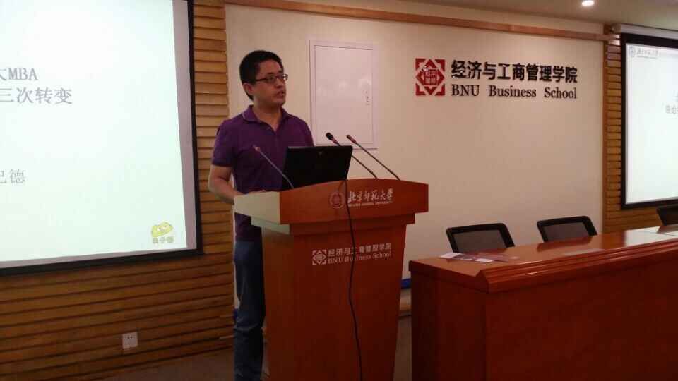 亲子猫(北京)国际教育科技有限公司总经理魏新德通过讲述自己的三次改变,分享了北师大MBA对自己创业以及人生经历的影响。