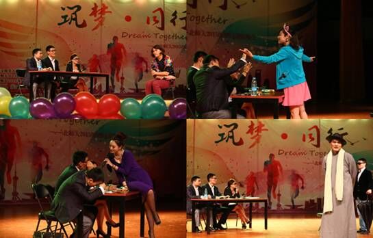 一曲《京师欢迎你》点燃晚会热情,随后歌曲、舞蹈、小品、T台秀等形式在内的各种节目轮番登台。脱口秀《我的备考生活》、小品《面试》、朗诵《80后的童年》等节目取材于同学们的真实经历,情节生动、贴近生活,引起同学们的强烈共鸣,现场不时爆发出阵阵热烈的掌声。老师们合作的节目朗诵《放飞梦想》和萨克斯钢琴合奏、歌曲《左手右手》也博得同学们的喝彩。