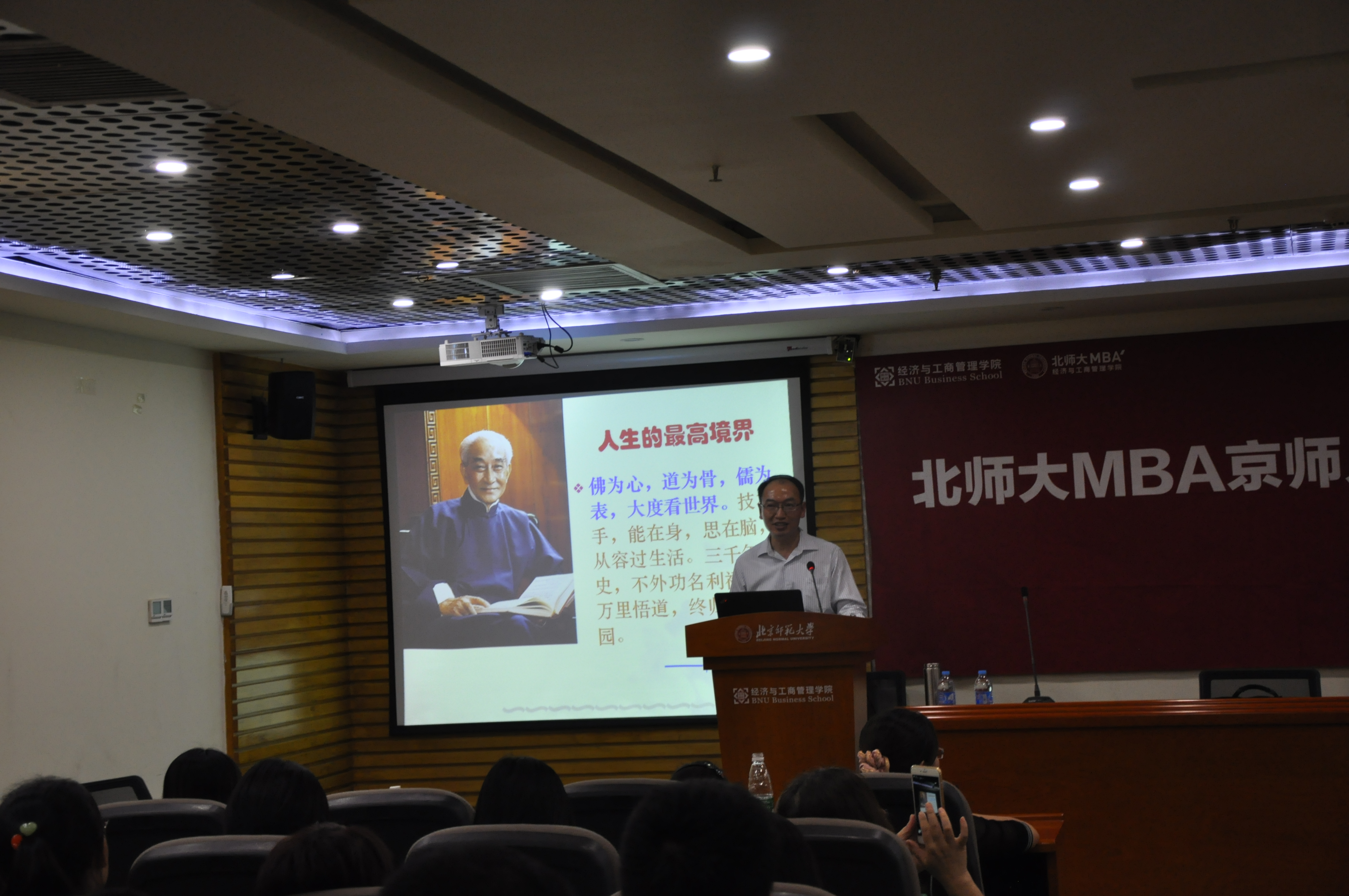 MBA中心主办的北师大MBA京师人文系列论坛之“国学与商道大智慧的内圣之道”主题讲座在京师大厦9406成功举办。主讲人为《国际金融研究》副主编、中国国际金融学会理事、中央财经大学在职硕士研究生业界导师、清华大学等多所知名高校国学与领导力和银行营销等课程特聘培训讲师李楠老师,欧洲杯