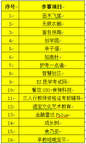 经评委嘉宾严格审议,组委会宣布以下项目进入16强,排名不分先后。