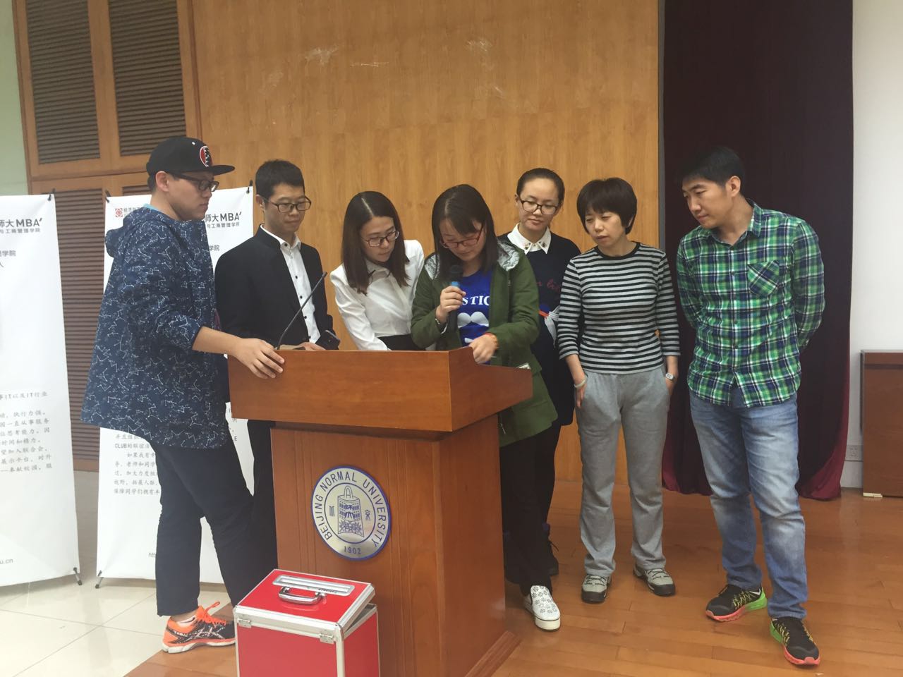 经济管理学院MBA中心王璐璐老师、李静雅老师、田璐老师、张丽老师,校研究生会副主席刘久怡、第七届北师大MBA联合会主席宗玲,以及15级联合会主席候选人和14、15级部分学生代表。