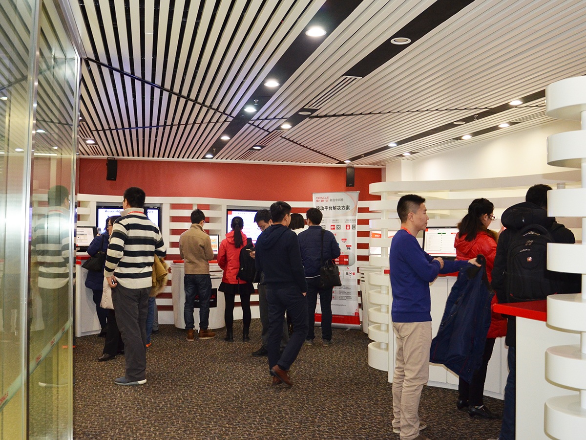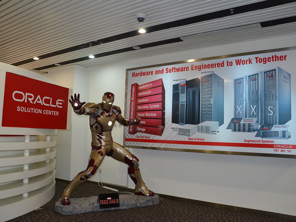 12月11日,北师大30余位MBA学子来到甲骨文大厦,受到甲骨文方面热情周到的欢迎。在体验区,除了一排排一体机之外,最引人瞩目的莫过于“钢铁侠”形象。“钢铁侠”曾多次现身甲骨文公司的全球大会,拉里·埃里森甚至还曾在《钢铁侠2》中客串角色。或许在甲骨文看来,人性与机器有机结合而成的“钢铁侠”,正是其软硬件集成设计的最好写照。