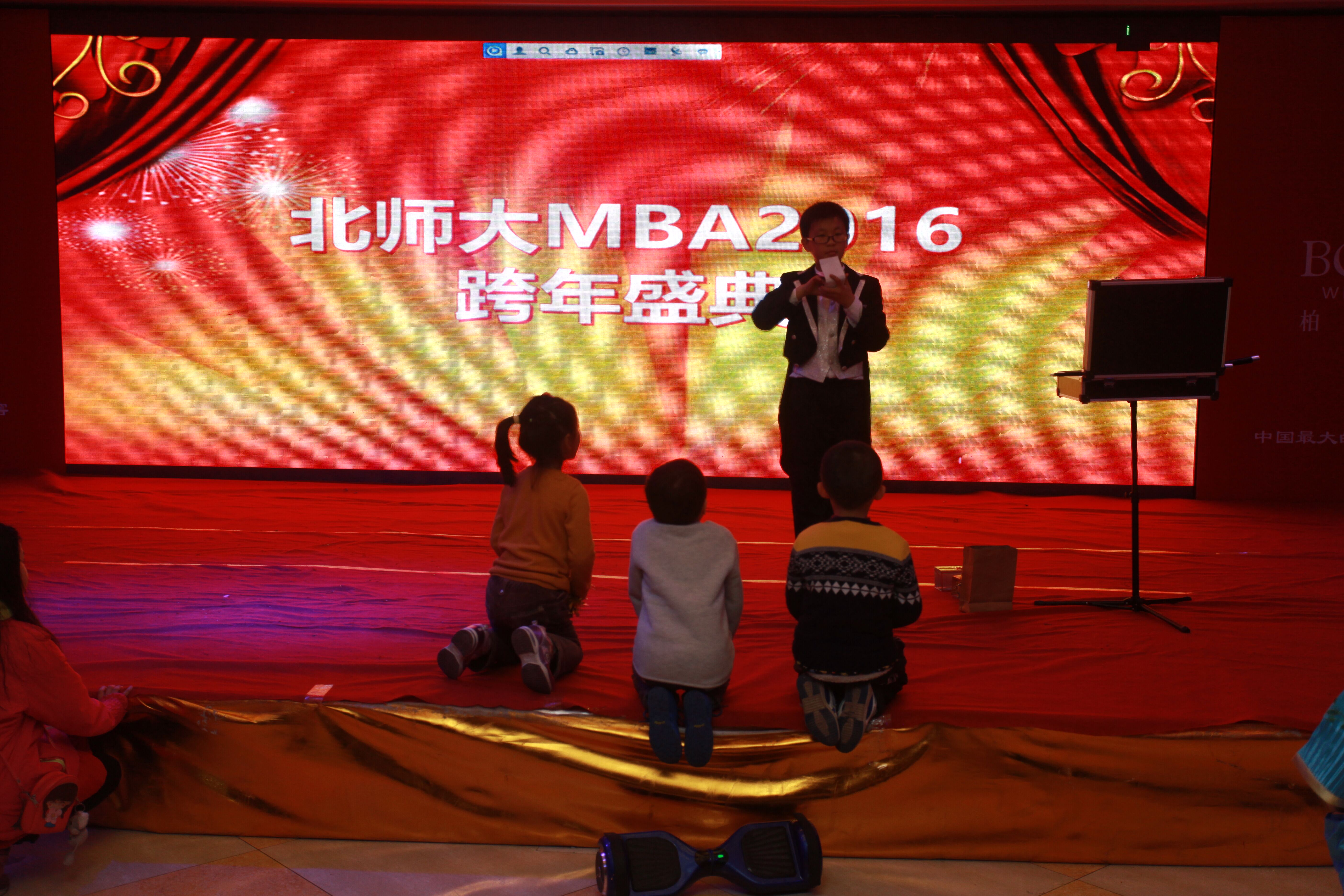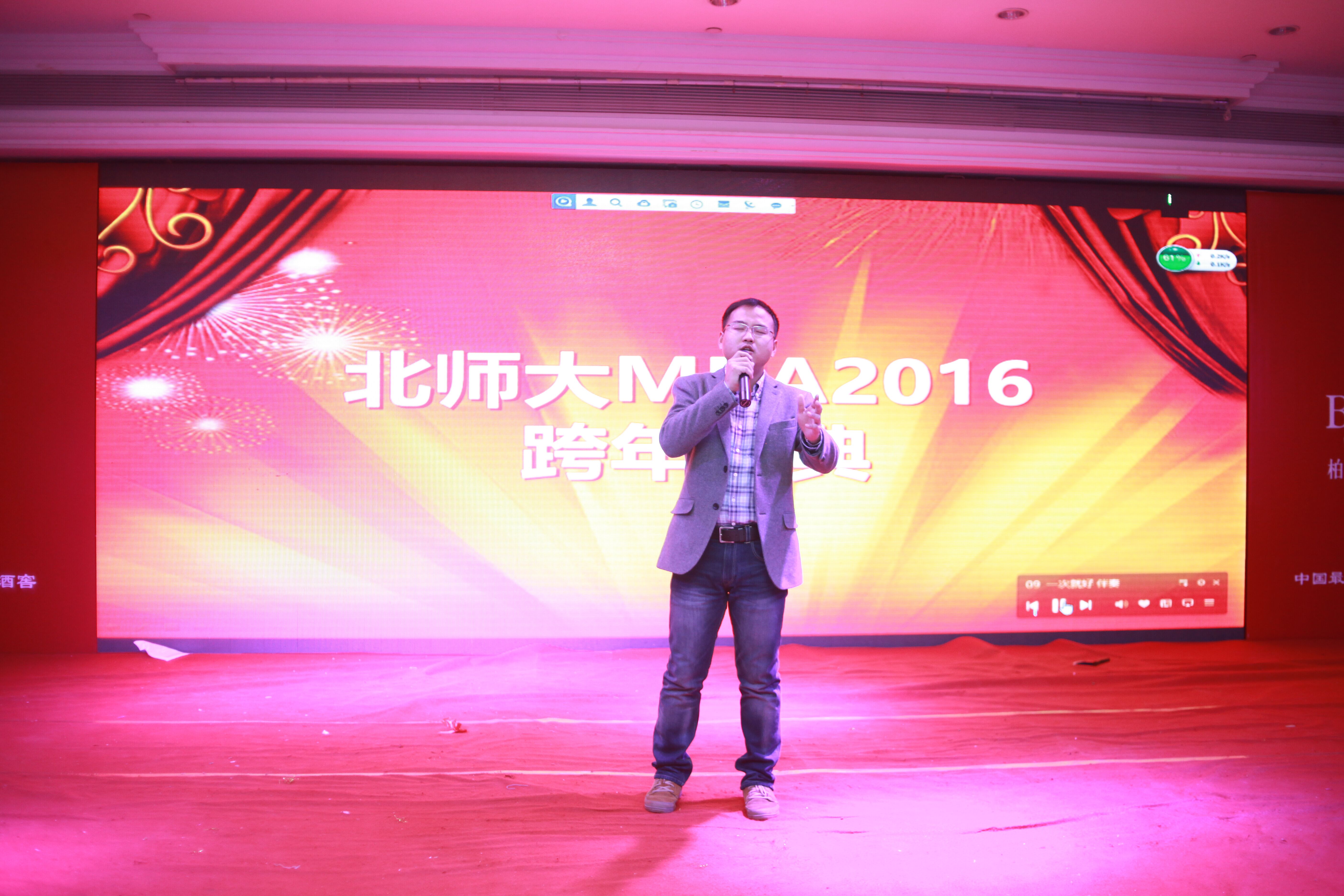 本次晚会由北师大MBA 2015级P1班的丛吉仁和P2班的陈奇峰同学主持,晚会总导演是负责MBA联合会活动部的副主席P3班陈赛。