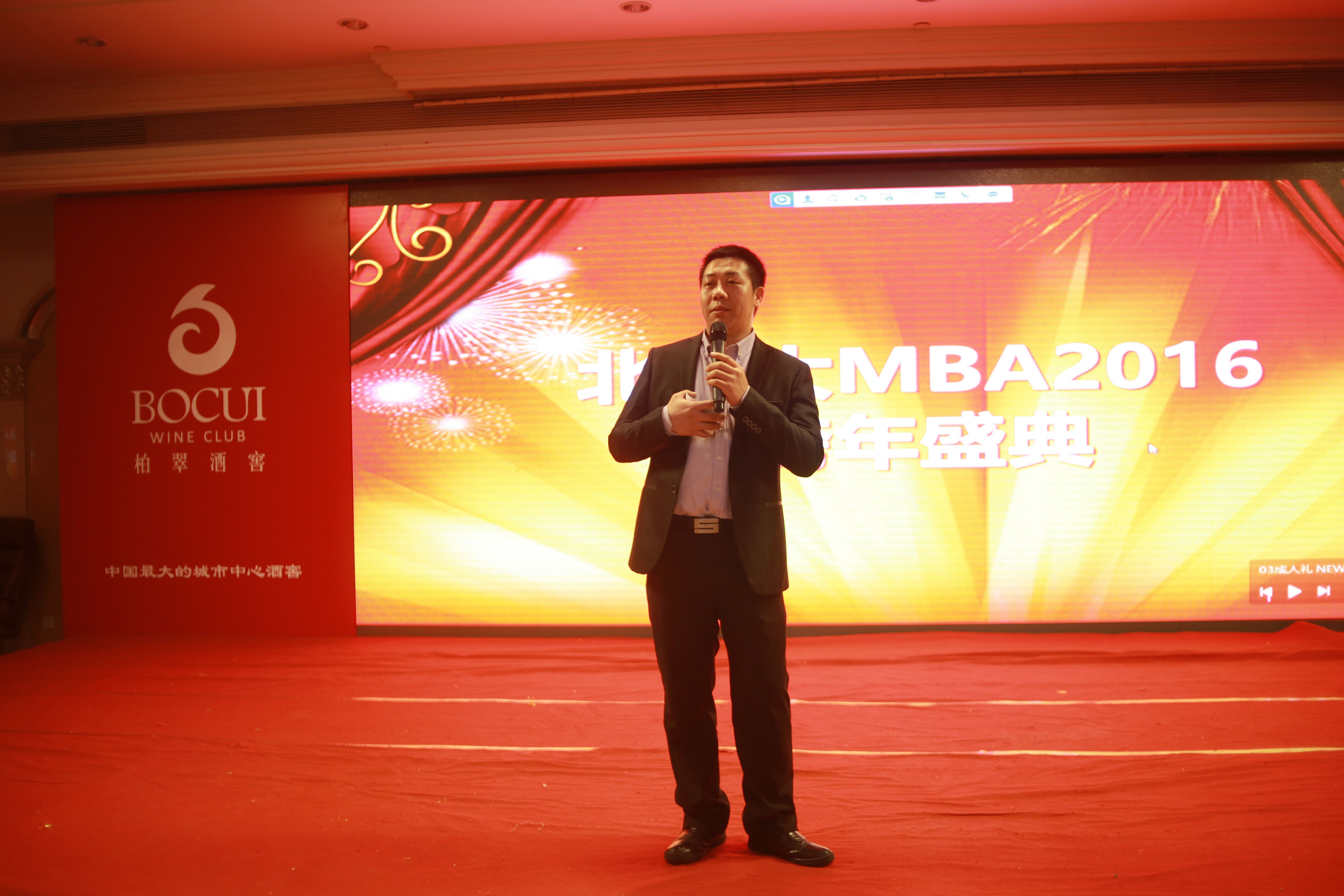 MBA中心主办,联合会活动部协办的“跨越15,见证成长,北师大MBA2016跨年晚会”在柏翠酒窖隆重举行。来自2015级的MBA学生、学院教师及MBA联盟主席团员,兄弟院校等近两百人共同参与了本次晚会。北师大MBA师生在一起,共同感受着新一年学生旅程带来的创新与梦想,欢乐与荣光。在这里,有绰绰耕耘的老师,有勤奋友爱的同学,他们是这台晚会的主角;在这一季,友谊被深深的加固,梦想把我们紧密的联系。
