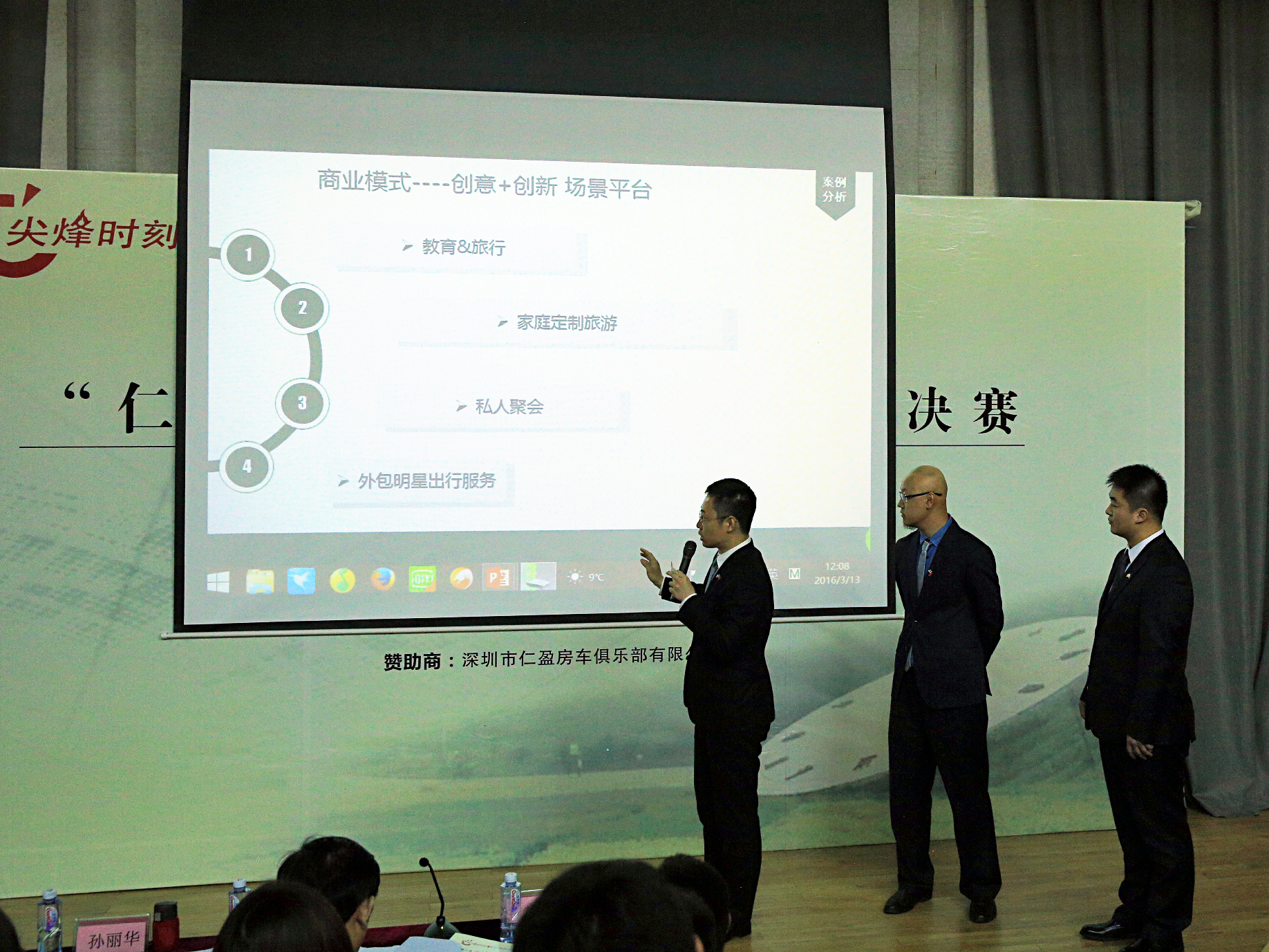 在比赛第二天的英文团队介绍环节中,我校团队以超群的英文实力获得了外籍评委和其他同学的认同和称赞。在之后的商业案例演示环节,我校团队在老师指导下,运用企业资源依赖、蓝海战略等理论,通过商业模式画布和企业资源价值曲线等工具,为案例企业设计出一套行之有效的商业模式,并结合汽车营销实战经验给出了切实可行的实操解决方案。虽然演示过程中遭遇了设备故障,但通过团队默契配合,队员们仍然从容不迫的完成了整个演示,这一点也受到台下评委的认可和鼓励。