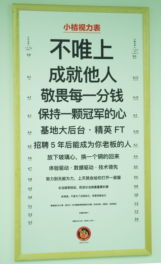 “小桔人”以简单、开放、激情为信仰,并以独立思考、极致执行、拥抱变化为做事原则。也正是靠着制度、文化建设,使得滴滴内部的沟通效率、运作效率极高。在滴滴,一周时间即可完成一个发布会的准备工作,而在一些大企业至少需要一个月时间。