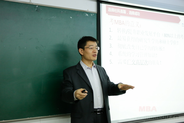 MBA教育中心主办的MBA备考讲座在京师大厦举行,讲座邀请到了北京社科赛斯教育集团校长李发进先生,为备考生全面解读MBA联考冲刺方法及备考策略。现场十分火爆,50人的教室吸引了到场130多人,很多没有座位的同学,被讲座的精彩内容吸引,坚持到最后,学习氛围空前高涨!讲座由欧洲杯