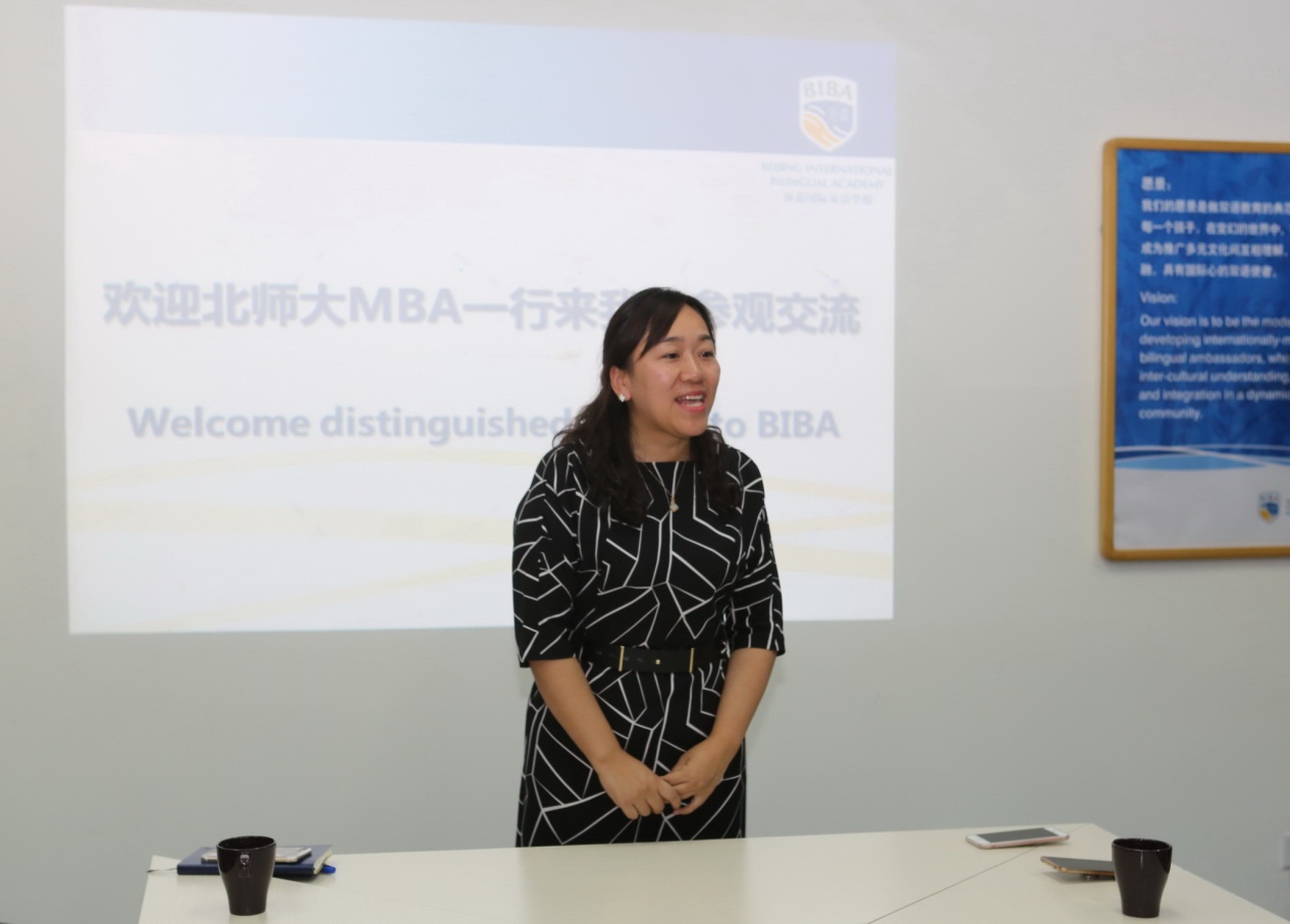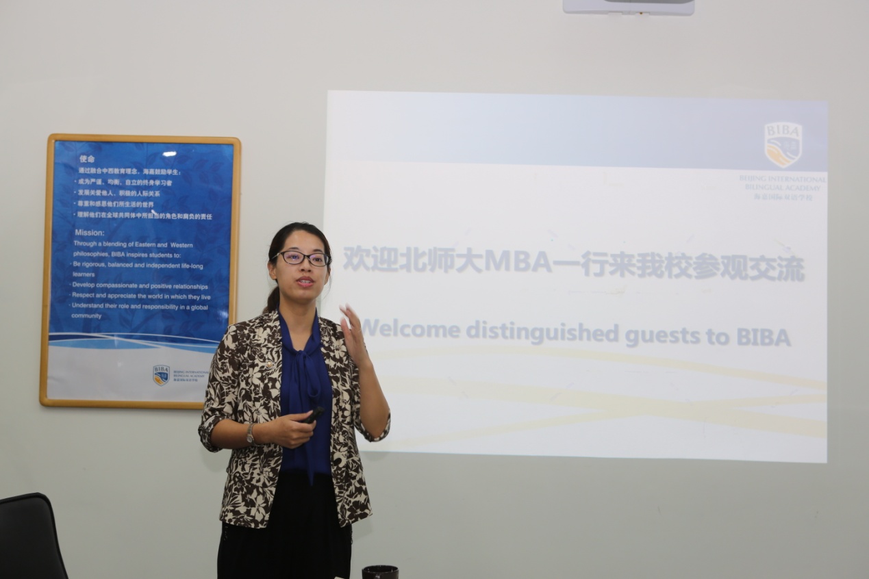 随后,海嘉国际双语学校领导与北师大MBA师生举行了隆重的座谈活动。宗玲校友首先代表校方致辞,热烈欢迎北师大MBA领导、老师和同学们到访,希望以后创造更多形式的交流机会。