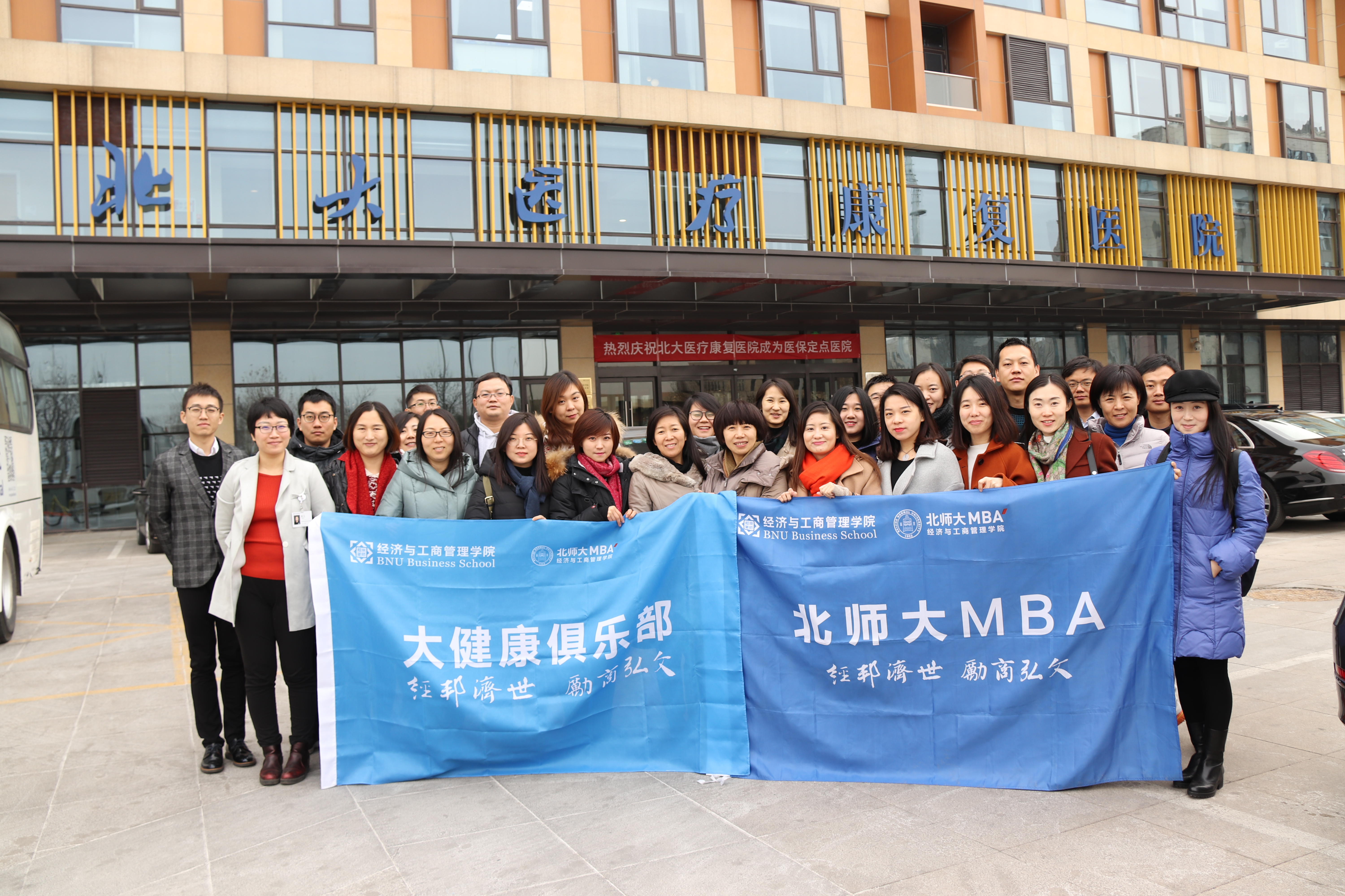 MBA教育中心张秋兰老师带队下,北师大MBA“大健康”俱乐部的同学一行30人走进北大医疗城,围绕北大医疗集团的战略布局开展了交流和讨论,并参观了康复医院和健康管理中心。