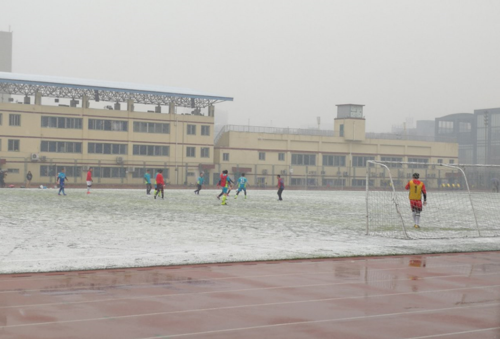 天无有效降水之后,比赛当天纷纷扬扬飘起了春雪,参赛队员一致决定以一场“雪地之战”宣告足球队冬歇期结束,进入