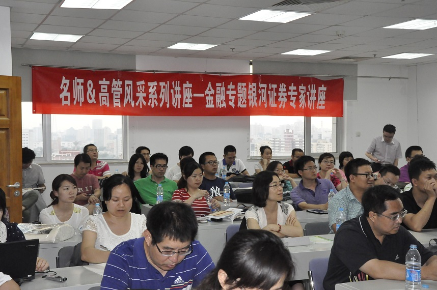 2013年7月6日晚,由来自银河证券的债券市场投资专家师永超先生带来的题为《债券市场及债券投资的方法和策略》的金融专题讲座在后主楼1620室顺利举办。许多对理财投资感兴趣的同学纷纷慕名而来,教室座无虚席。此次活动由北师大MBA联合会学术交流部主办。