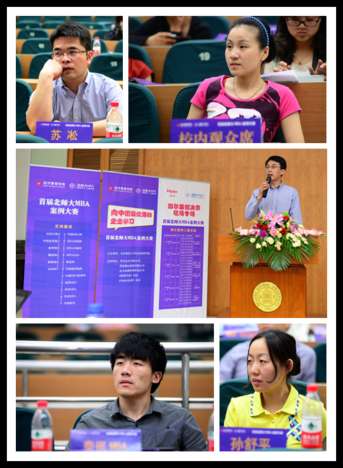 首届北师大MBA案例大赛于2013年3月启动,截止到3月31日报名结束日,共有来自北师大MBA,以及中国地质大学、中央民族大学、北京工商大学MBA等27支队伍报名参赛。经过专家评委对参赛团队提交的案例分析PPT进行分析点评,有六支队伍于5月12日晚6:00-10:00展开了《海尔:用“人单合一”实现“双赢”》的案例决赛的角逐。