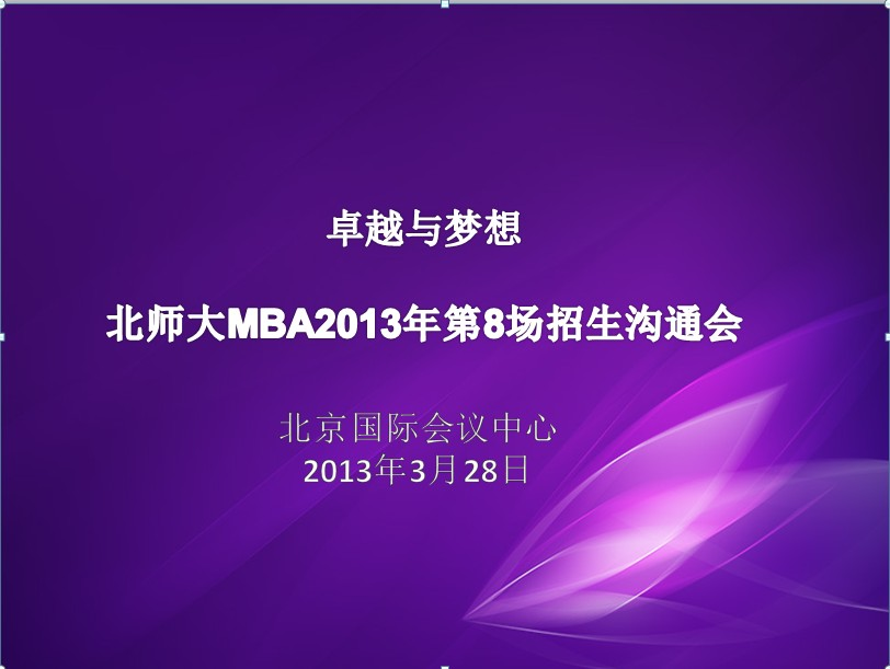 3月28日晚,在北京国际会议中心三层308会议室,北师大MBA2013年招生沟通会成功谢幕。这也是北师大MBA2013年3月份的第8场招生沟通会。
