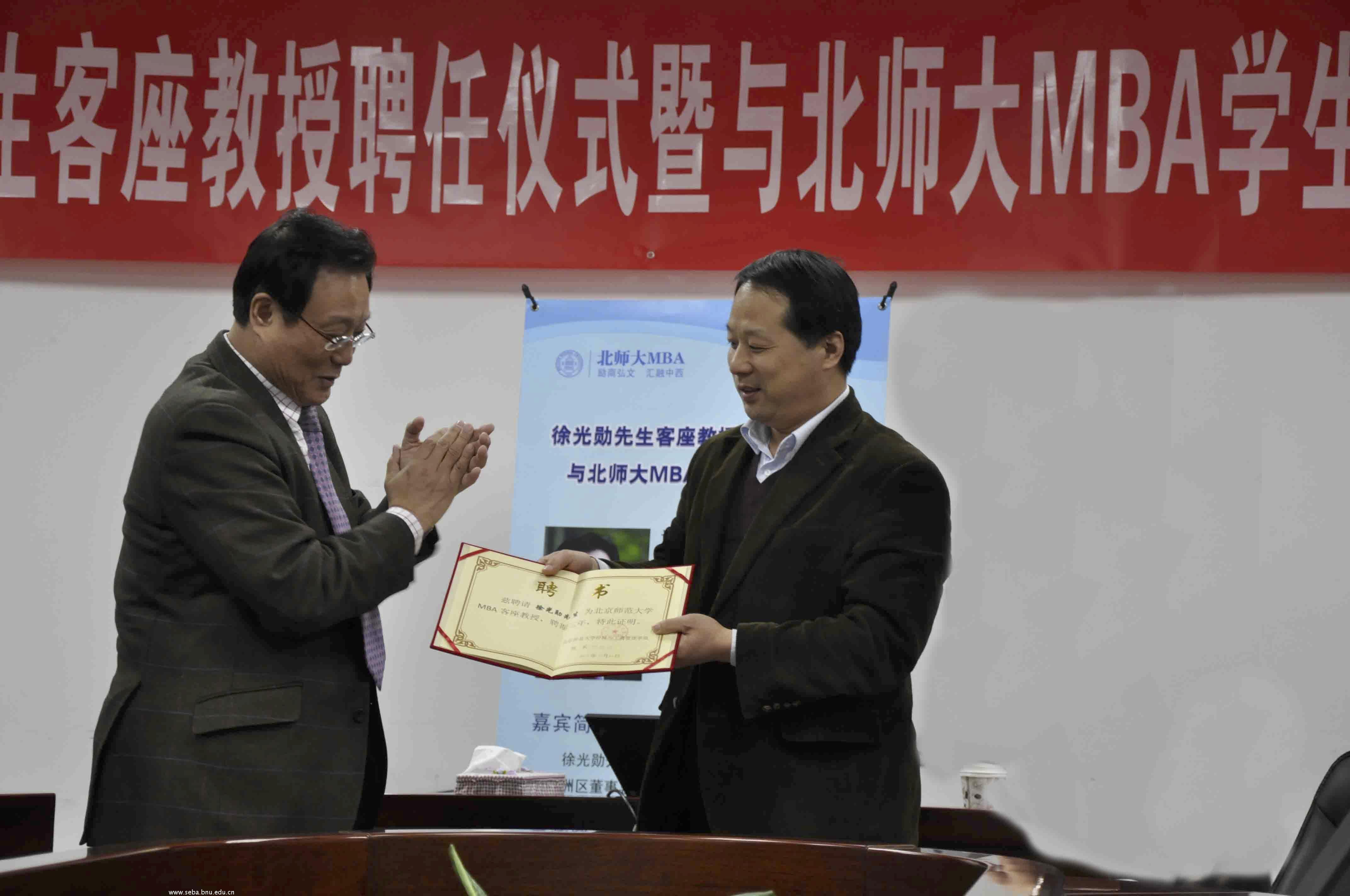 徐光勋先生客座教授聘任仪式暨与北师大MBA学生交流沙龙