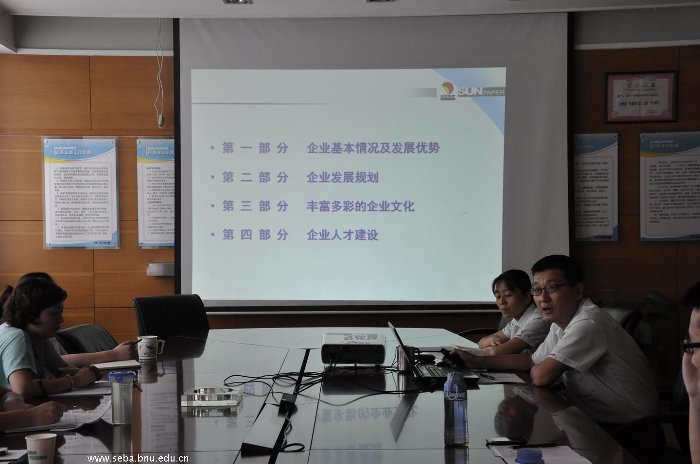 图1:山东太阳纸业有限公司领导为北师大经管学院同学们介绍企业概况