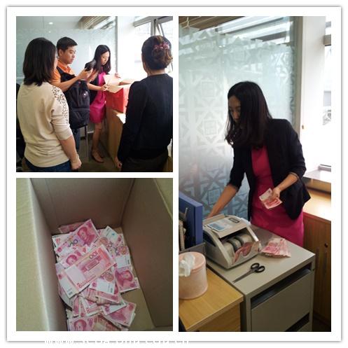 负责现场捐助的同学辛苦地坚持了一天,但足以让人欣慰的是,到了下午5点,仍然有同学为捐款赶到现场。我们坚信大家的爱心是无限的,背后的支持也是无限的。临近活动结束,在MBA中心李婧雅老师的监督下,由几位现场捐助同学一起打开捐款箱进行捐款数额的清点。大家用自己的爱心,凝聚成了一股强大的精神力量,这不仅仅是数字,更多是大家的那份关怀。经过清点,今天共计接收现金捐款额为3万2千余元。