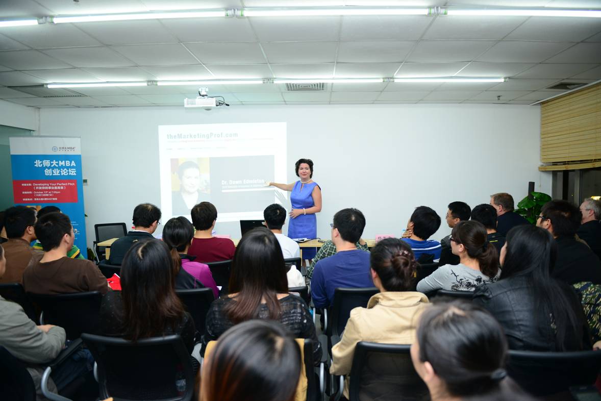 2013年10月13日,2013年北师大MBA创业论坛第一讲——developing your perfect pitch (开发你的事业最高音)在京师大厦9407房间正式开讲,来自美国圣文森特大学的Dawn Edmiston教授和近80余名北师大MBA学生一起分享了关于如何充分利用网络建立个人品牌的话题。欧洲杯