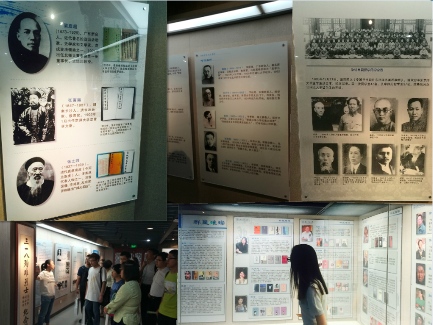 名师厅展现了以李大钊、鲁迅、梁启超、钱玄同、吴承仕、黎锦熙、陈垣、启功等为代表的一大批名师先贤,他们哺育了诸如中国共产党第一位女党员缪伯英 、刘和珍等仁人志士,哺育了划定南海11段线,为我国宣示南海主权留下铁一般事实的白眉初、郑资约、傅角今等专家学者,也哺育了莫言、余华、苏童、刘震云等为代表的时代先锋。北师大历经百年而不衰,大师辈出,弦歌不辍的璀璨成就着实激发出了每一位同学的自豪感。