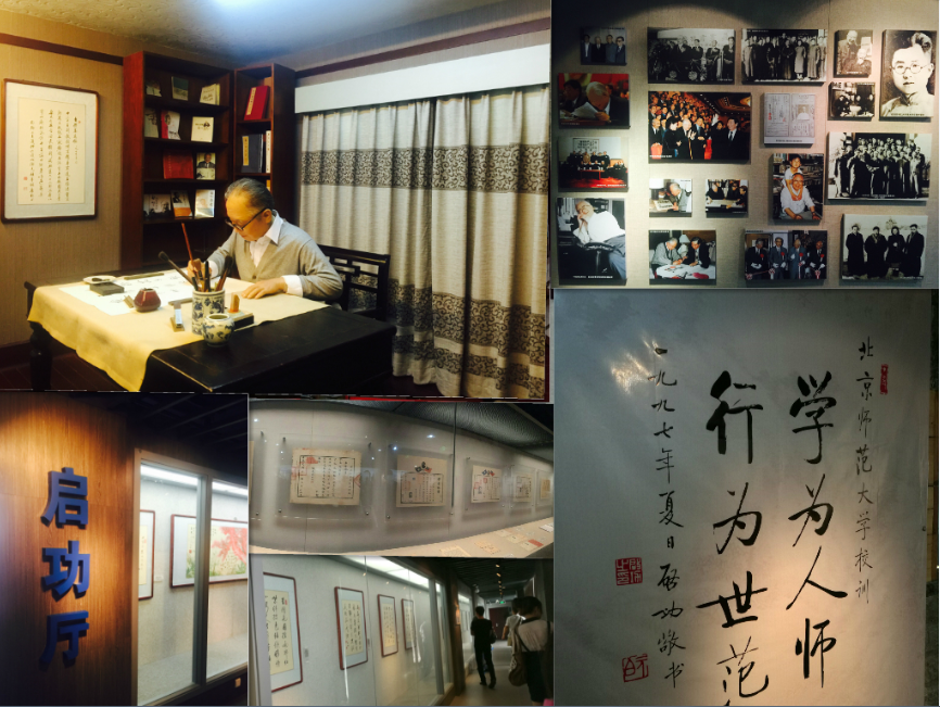 启功厅展示当代人文大师,著名学者、画家、书法家启功先生的一生。逼真的启功蜡像,展示了启功先生提笔书写的大师风采,一幅幅精彩绝伦的书画作品,震撼了到场的每一位同学。尤其启功先生题写的北师校训“学为人师 行为师范”引起了同学们的深深共鸣,参观了校史馆的每一位同学此刻都明白,这一校训不是书斋里想出来的,是百年师大人一步一步践行出来的。
