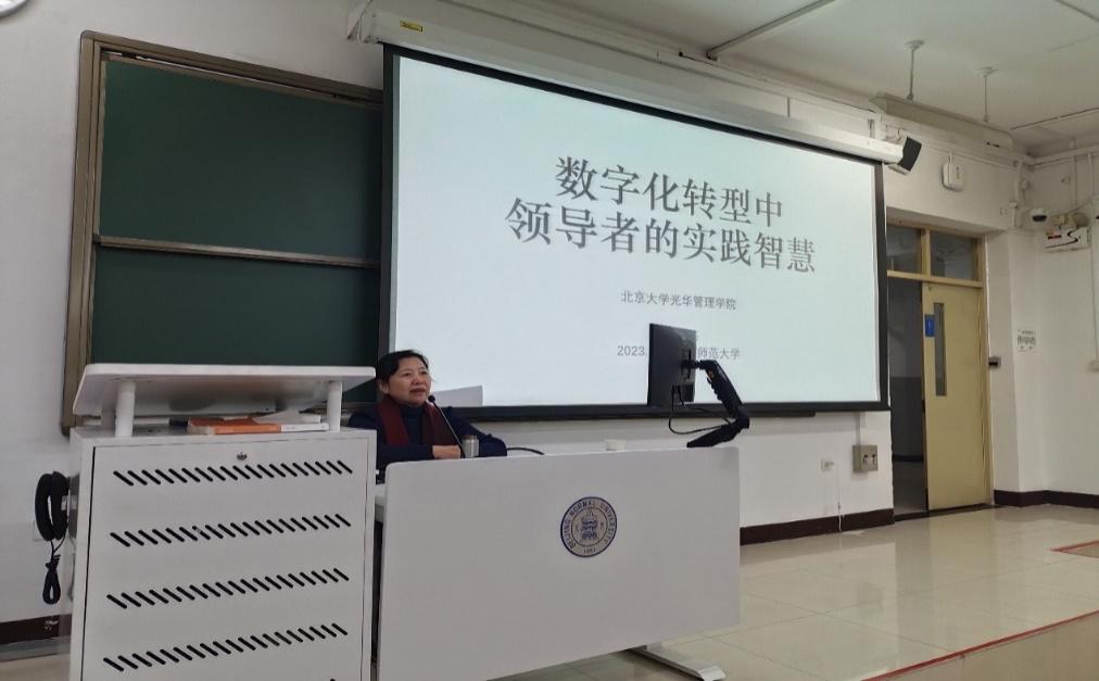 2023年12月2日晚,欧洲杯 “数字经济与管理大讲堂”第25讲《企业数字化转型的实践智慧与能力构建》在教二楼108教室举办。本次讲座特邀北京大学光华管理学院董小英教授主讲,MBA 教育中心副主任李静主持,200余位学生到场聆听。