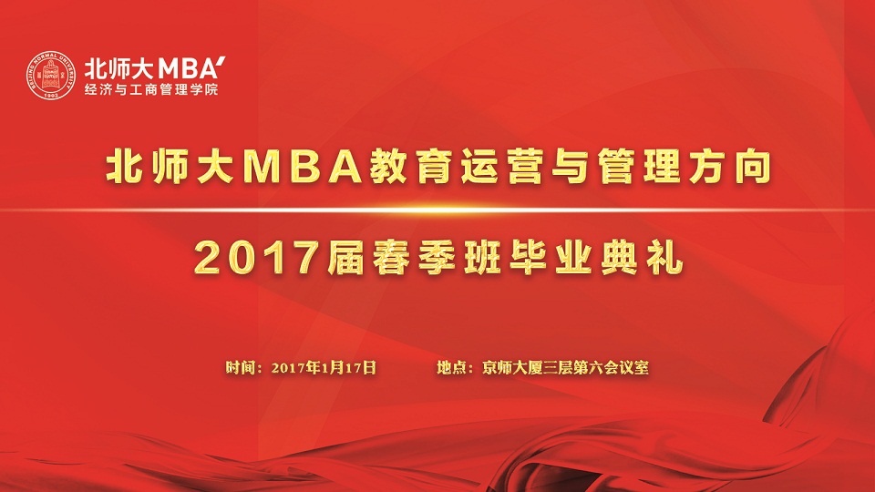 京师大厦三层第六会议室济济一堂,北师大MBA教育运营与管理方向2017届春季班毕业典礼隆重举行。欧洲杯