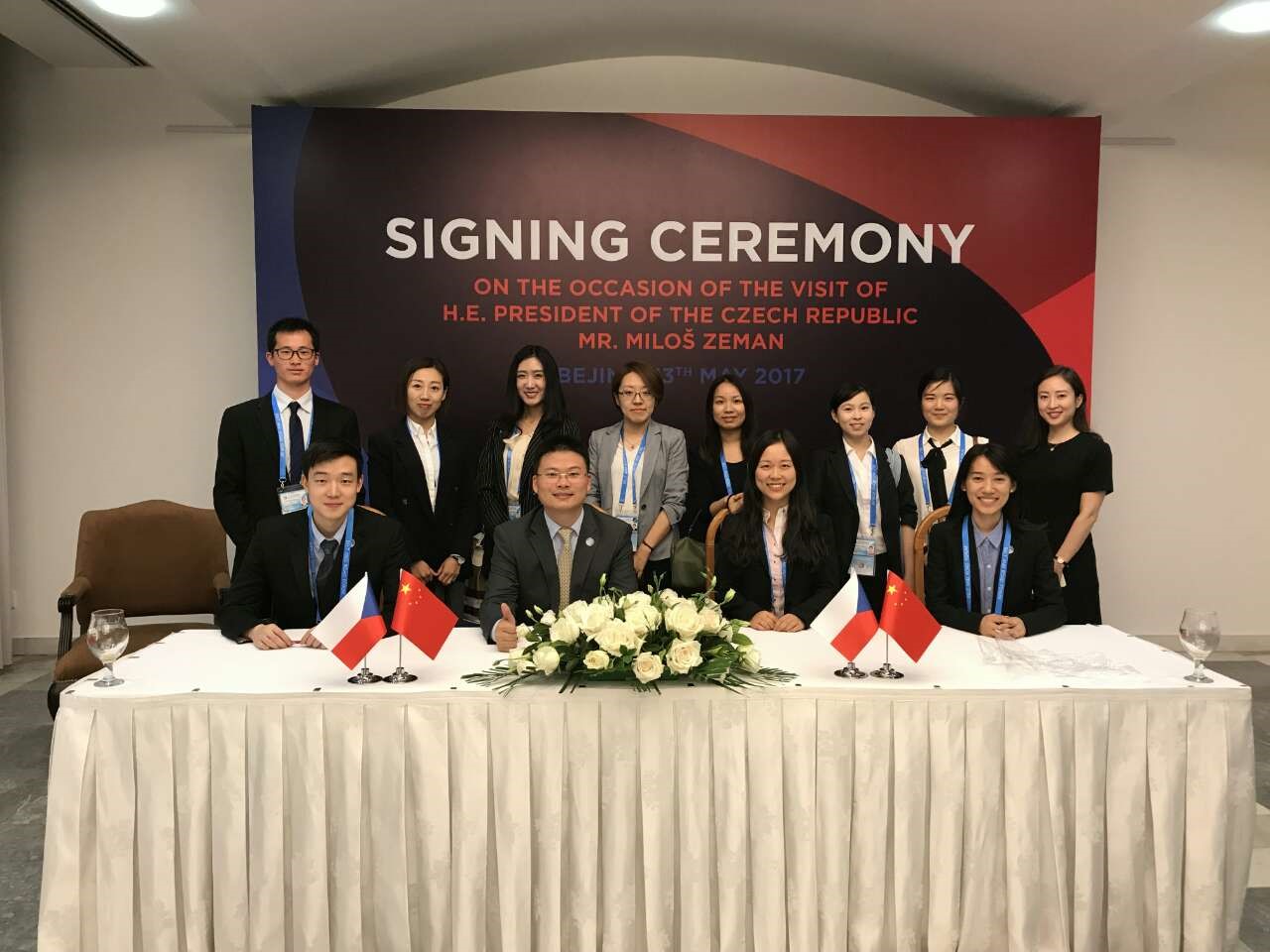 图2 2016级国贸陈子俏(第二排右三)与捷克元首团的联络官们