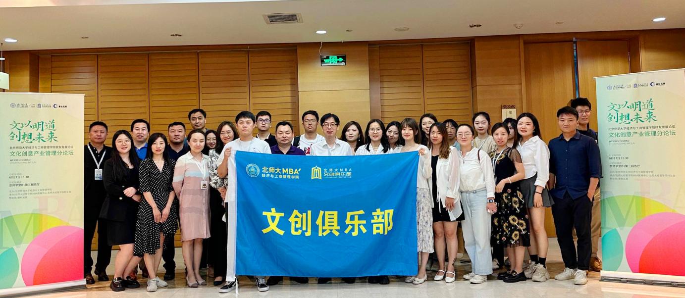 北师大艺术与传媒学院教授、中国电影产业研究中心主任宋维才老师,全联同心文化传媒(北京)有限公司总经理、民歌非遗传承人吴世滔,北京奥林匹克经济技术开发有限公司总经理王缔功,中关村不动产商会产业升级研究院院长梅峰,科大讯飞股份有限公司中教海蓝内容合作部总监陈巍,爱化身科技运营合伙人张海军,研学大运河云平台负责人、壮游人生教育科技董事长程颢,梦视界影业(北京)有限公司高管于芳平等嘉宾出席了分论坛。嘉宾们分别做了主题分享,畅想了文创产业未来的发展方向,为大家打开了文创领域创新探索的新世界。嘉宾分享环节完成后,北师大MBA文创俱乐部正式成立。