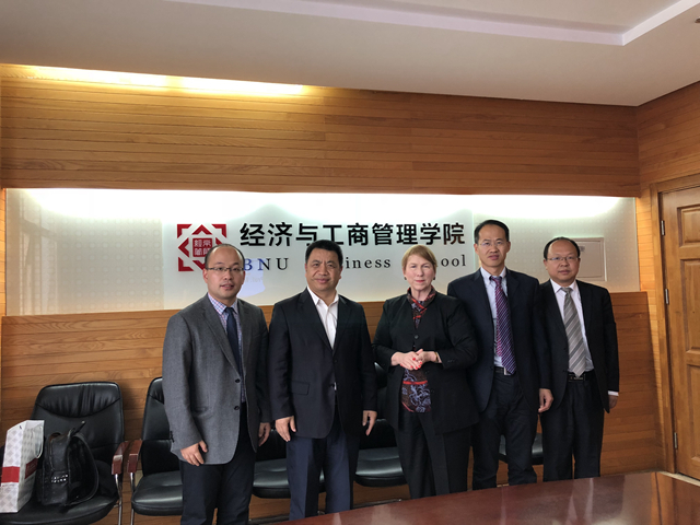 10月21日,南澳大学副校长、商学院院长Marie Wilson到访欧洲杯。院长赖德胜、书记孙志军、副院长崔学刚,以及院长助理蔡宏波、国际交流与合作办公室副主任谢佳会见了来宾。