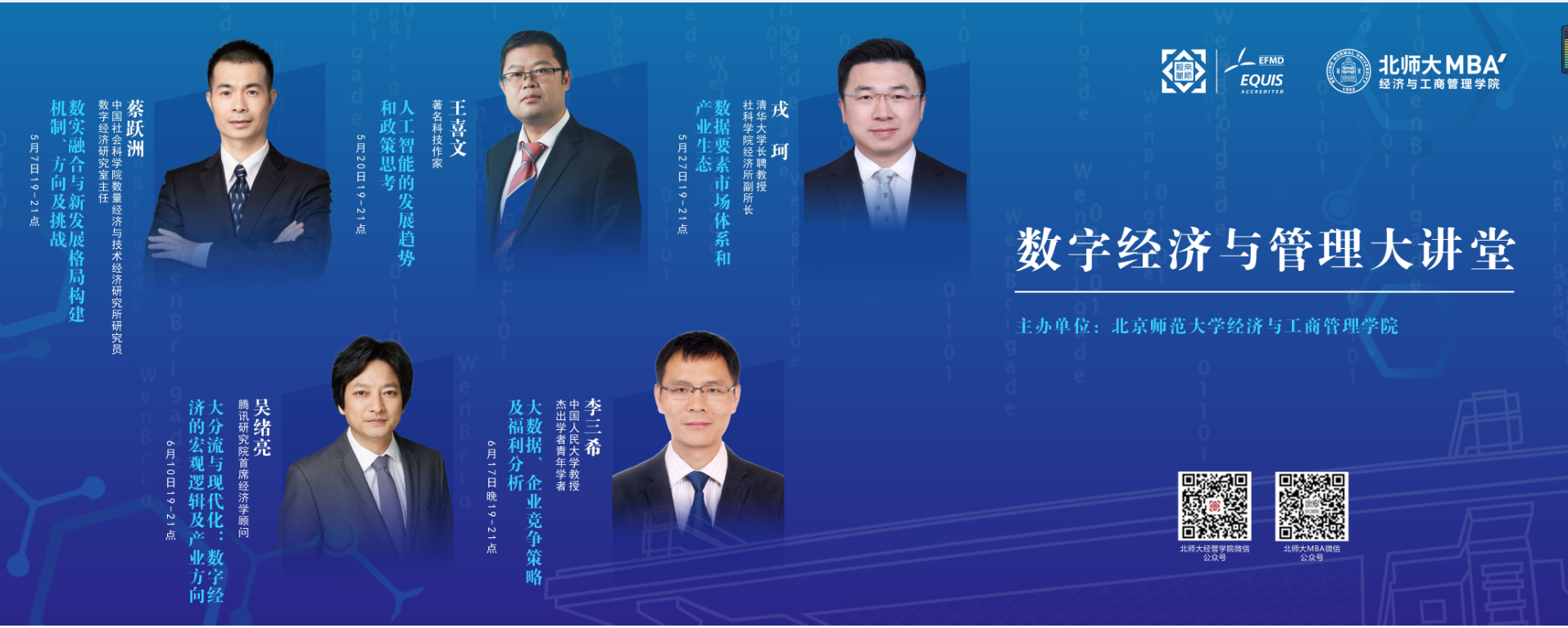 2023年5-6月《数字经济与管理大讲堂》陆续邀请5位重量级专家进行讲座分享,欢迎关注参加。
