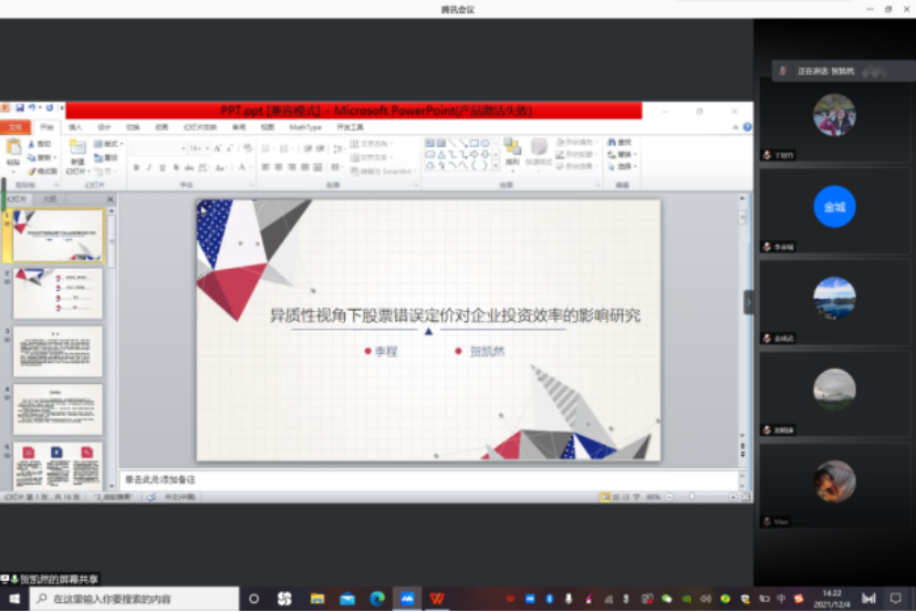 分论坛4的主题为金融经济,由山东财经大学国际经贸学院教授王明益主持,《经济研究》编辑部主任金成武和欧洲杯 助理教授王言做点评,西南政法大学经济学院刘晓康、中南财经政法大学工商管理学院贺凯然、吉林大学商学院丁志国和西安理工大学经济与管理学院周程先后汇报了各自的论文。