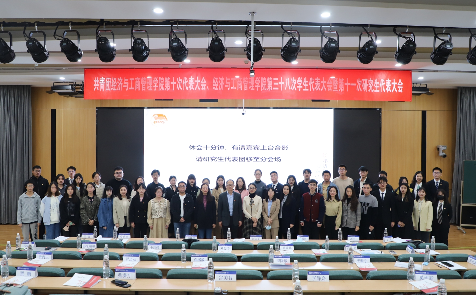 大会中场休息,嘉宾合影留念,研究生代表移至分会场京师大厦9406会议室。