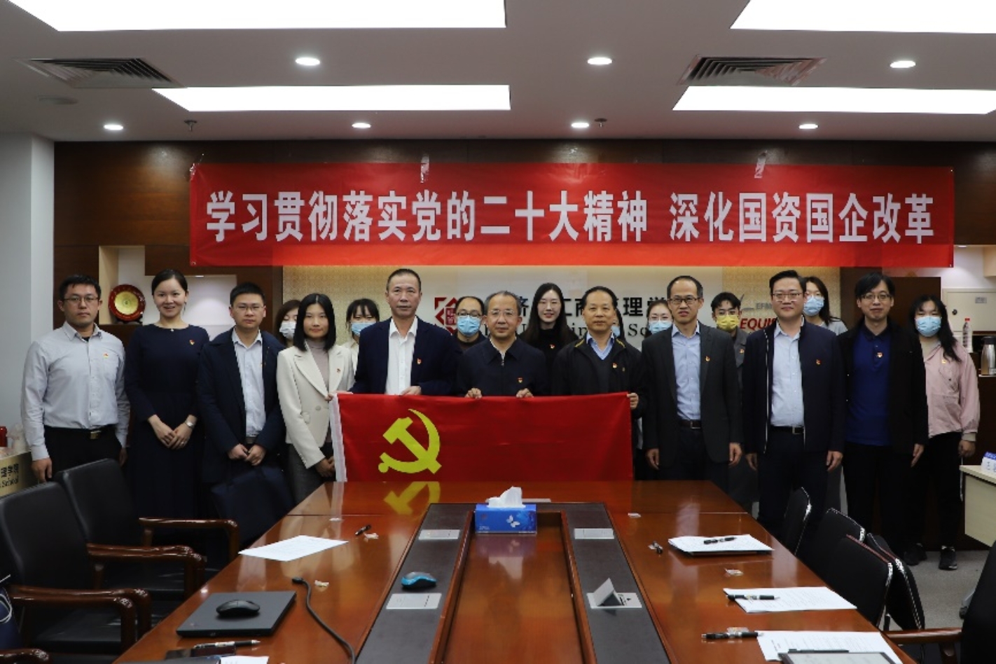 为贯彻落实习近平新时代中国特色社会主义思想,深入学习领会党的二十大精神,2022年11月3日下午,欧洲杯 党委与国务院国资委改革办党支部联合举办主题党日活动。参加活动的有国务院国资委改革办常务副主任尹义省等一行6人,经管学院党委委员、师生党员代表等30余人。