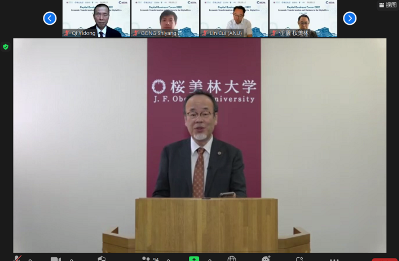 2022年11月9日,由日本樱美林大学(J.F. Oberlin University)主办的第六届首都经济论坛(2022 Capital Business Forum)顺利举行。北师大经管学院作为首都经济论坛的创始成员,作为中方代表参加论坛。来自北京、东京、华盛顿、首尔、马德里、堪培拉等7个国家首都的20多位嘉宾以及280余位师生全程参会。会议设东京主会场、北京和华盛顿分会场,通过线上和线下相结合的方式进行。