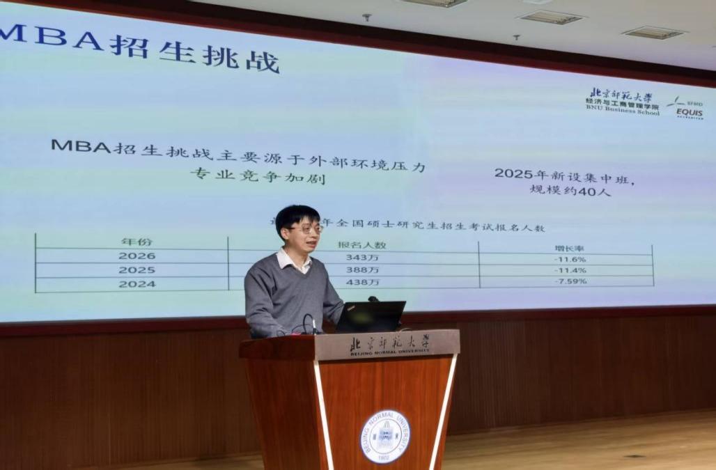 院长助理周江华汇报了MBA教育工作。过去一年,MBA教育面对激烈的市场竞争,主动求变,通过全媒体矩阵宣传实现品牌破圈;在培养环节,通过升级课程体系、强化数字素养与实践教学,以及深化校企协同育人,进一步提升了MBA教育的品牌含金量与人才培养质量。