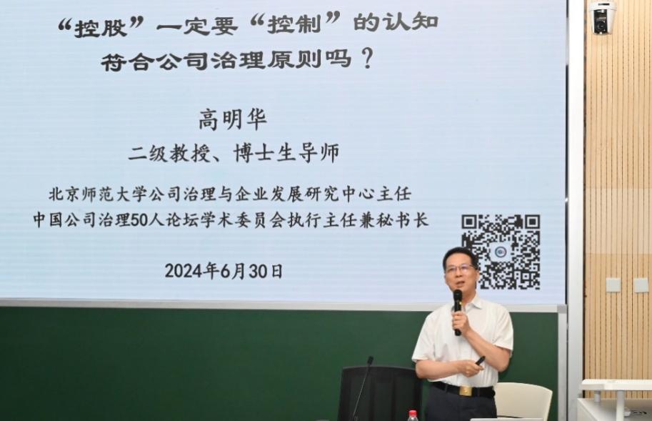 随后,“明师”公开课(第一讲)由欧洲杯 高明华教授主讲。高明华教授以“‘控股’一定要‘控制’的认知符合公司治理原则吗?”为主题,为大家带来了一场精彩的学术盛宴。他深入浅出地剖析了公司治理中的关键问题,如控股股东的权利与责任、董事会独立性的重要性等,并通过实际案例分析了大股东控制可能带来的风险和挑战。高明华教授的讲解深入浅出,引人入胜,引发了大家对公司治理现代化改革的深入思考和热烈讨论。