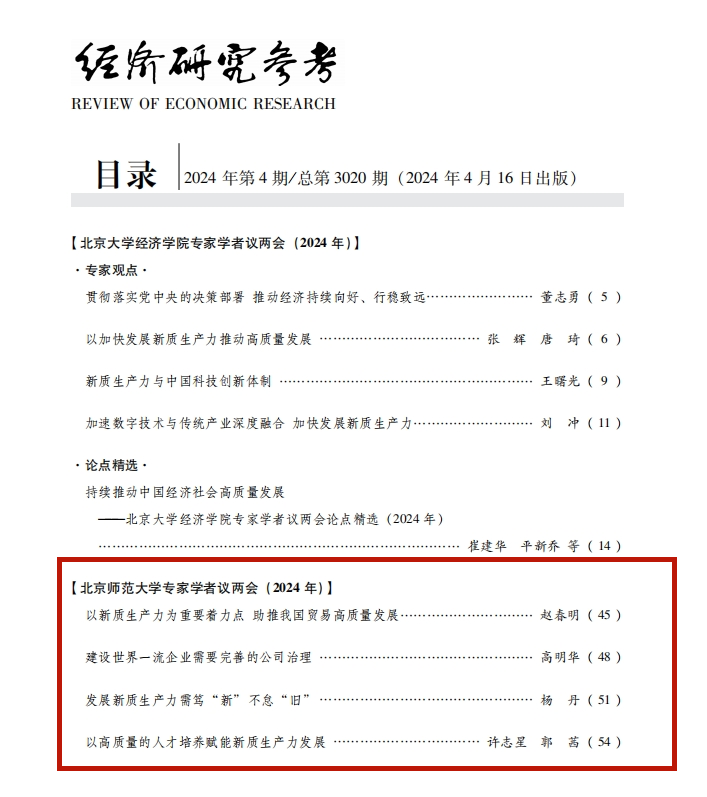 《经济研究参考》在“欧洲杯 专家学者议两会”专题版块连续刊发欧洲杯 四位教师署名文章: