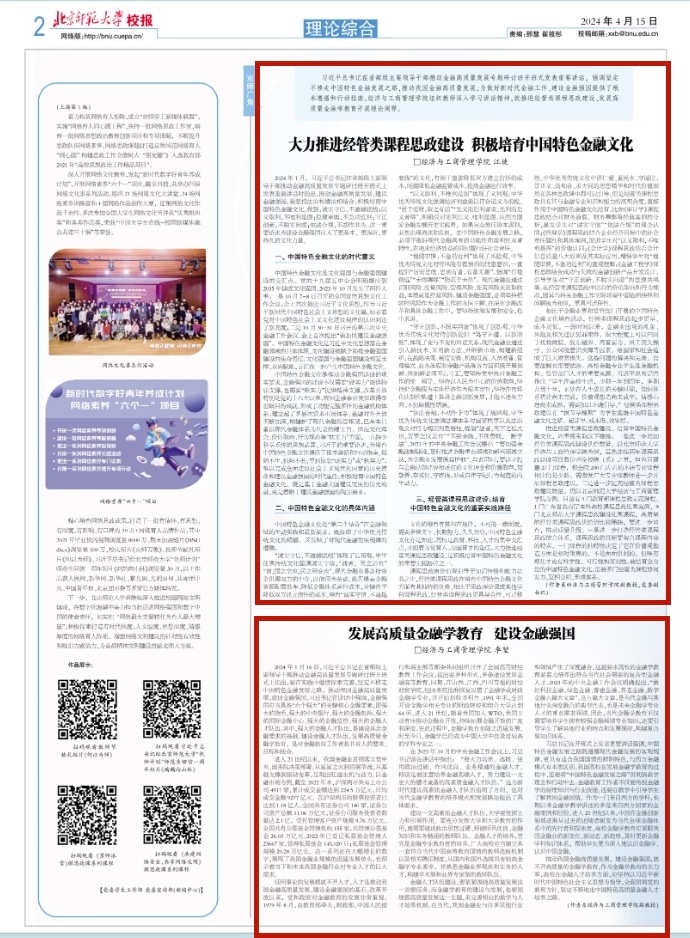 1.江婕:《大力推进经管类课程思政建设 积极培育中国特色金融文化》;
