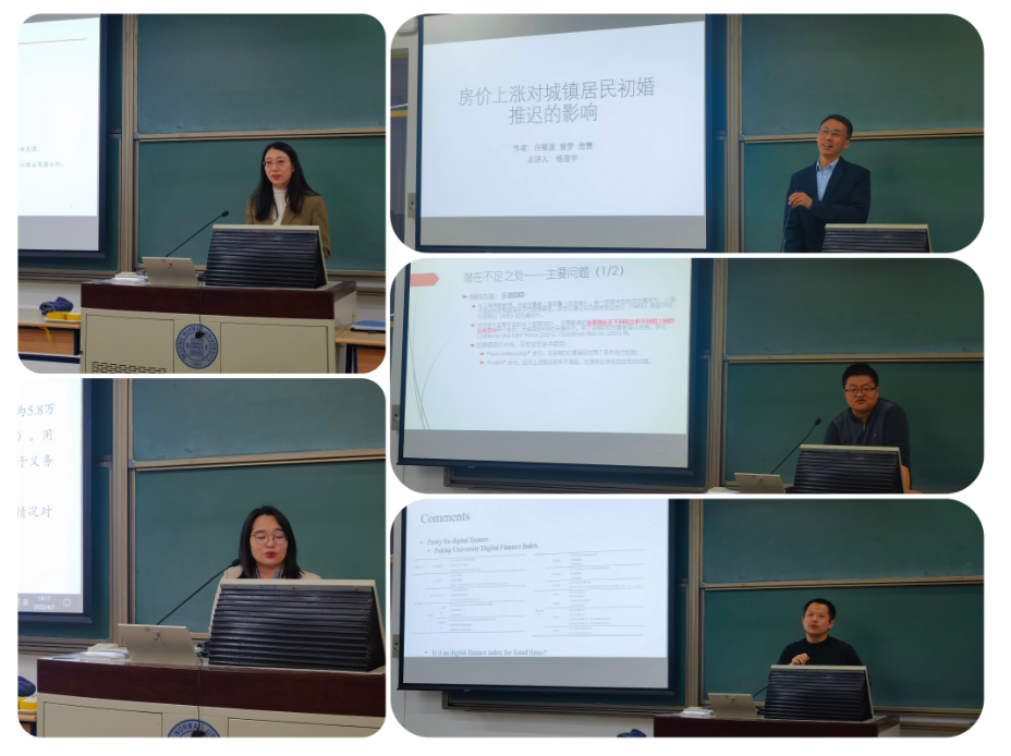 经济论坛在教二101进行,本届经济论坛投稿31篇,论坛展示为8篇,出席的专家有杨澄宇教授(专家组组长)、党委副书记韩丽丽老师、向虹宇老师、徐立成老师、高晶晶老师,主持人为2020级博士生郭睿。每一位展示的同学都做了详尽的论文汇报,专家对发言的同学做了真诚、精准、幽默、精彩的点评,尤其是杨澄宇老师讲故事点评的方式,将论坛推向了高潮,在欢声笑语中落下了帷幕。最后,专家为报告同学们颁奖并合影。