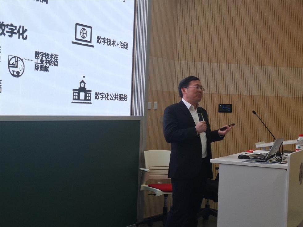 李纪珍教授首先从生产要素、生产力、生产关系三个方面阐述数字经济,梳理了数字产业化和产业数字化之间的区别。他指出在数字经济时代,企业通过网络构建数字生态系统,通过数据发展多元化业务。企业数字化转型是企业借助数字技术和数字业务来推动商业模式转型和数字化商业生态重构的过程。随后,他分析了企业数字化转型的底层逻辑,介绍了特斯拉、贝壳ACN网络、阿里巴巴等企业数字化转型典型案例,提出了技术赋能、数据驱动、自生长创新、生态系统演进等几个观点。最后,他基于华为数字化转型和广州地铁集团与腾讯集团合作开发的穗腾OS2.0系统展望了企业数字化转型的未来趋势。讲座结束后,李纪珍教授与同学们积极交流,解答了他们提出的疑问。