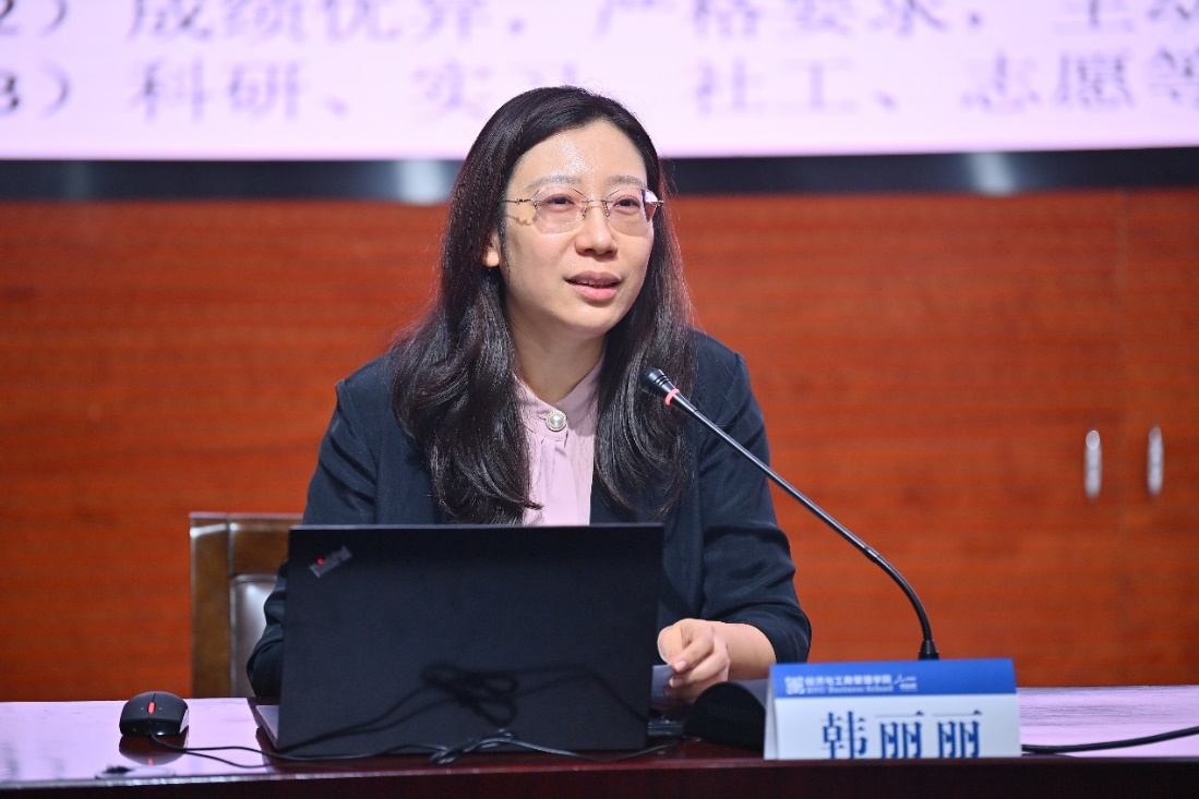 张惠琳老师介绍了学院学业辅导系列主题活动,并提醒同学们正确认识大学生活,纠正错误观念,鼓励同学们抓好学习主业,积极拓展视野做好我国经济学家、管理学家后备军。李论老师为同学们讲解了职业生涯规划的特点,并向同学们展示了快速获取就业信息的各种渠道和方法。高晶晶老师向同学们详细地介绍了学校及学院的各类资助政策,并对学校各类奖学金体系进行了介绍,同时她还向同学们介绍了大学生应征入伍的要求、各类优待和应征节点等相关政策。康昊然老师从五个方面介绍了班级建设如何开展,并鼓励各班要注重开展班级文化、班风建设,提高班级凝聚力,并向同学们简要介绍了户籍档案工作的相关事宜。范瑞聪老师向同学们介绍了学校心理咨询服务体系,鼓励各位同学务必重视自身的心理健康,如果遇到困难务必要及时求助。