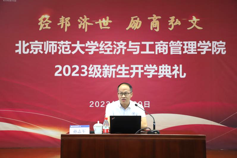 学院党委书记孙志军向新生讲授了开学“第一课”——院史院情教育。回望过去,孙老师描述了学院自建院以来四十余年的辉煌历程,展现了学院机构与学科变革发展深深植根于我国经济社会体制改革和发展的大背景。立足当下,他介绍了当前学院构建的多层次、多类型的人才培养体系以及高水平、国际化、多元化的教师队伍;论述了学院培养具有深厚的人文与科学素养、开阔的国际视野、强烈的社会责任感和“四有”素养人才的育人理念,并从课程质量、国际化交流、课外活动、教师指导等八个方面详细介绍了与理念相应的各项实际举措。最后,孙志军结合学院的使命、愿景、价值观阐释了学院文化和精神气质,鼓励所有新生争做“国之大者、为国为民”的新时代经管人。