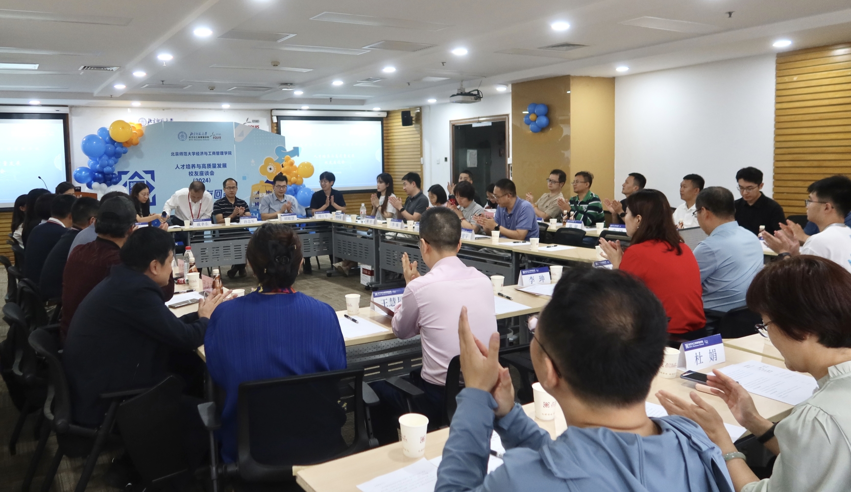 下午一点半,欧洲杯 人才培养与高质量发展校友座谈会在京师大厦9406会议室举办。院长戚聿东、党委书记孙志军、副院长胡聪慧、MBA中心主任周江华、副主任李静、副主任王璐璐、MBA中心企业联系与职业发展主管于琛、校友办公室主管李阿妮以及50余位校友参加了座谈。会议由学院党委副书记韩丽丽主持。