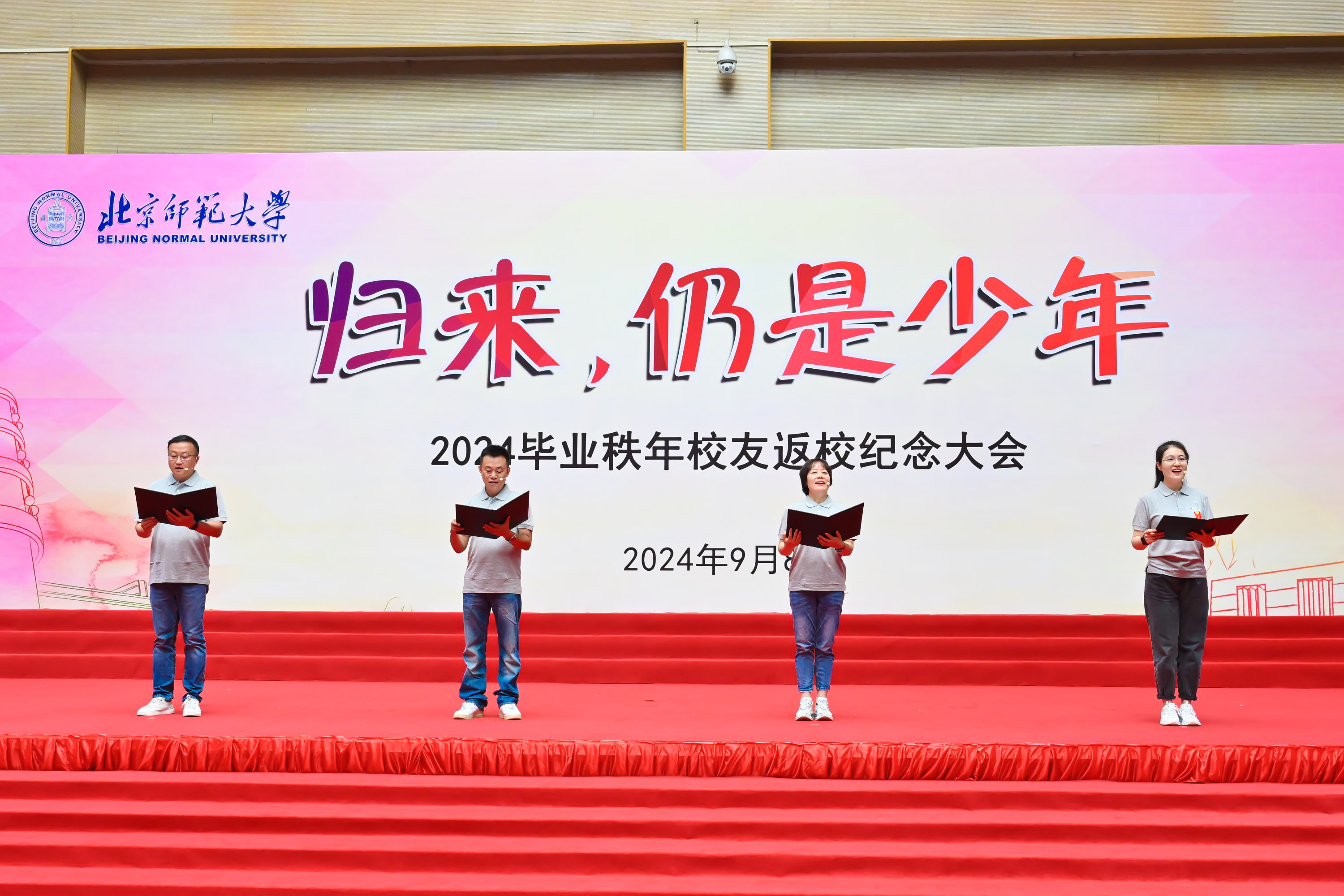 大会中的校长致辞、校友代表发言、授秩年旗、颁发班级联络大使聘书、《师大和你》诗朗诵、《校园的早晨》《走四方》《灯火里的中国》《今夜无眠》《我和我的祖国》五首歌曲联唱等环节得到了大家的一致好评,千余校友欢聚一堂,夯实了学校和校友之间的深厚情谊。