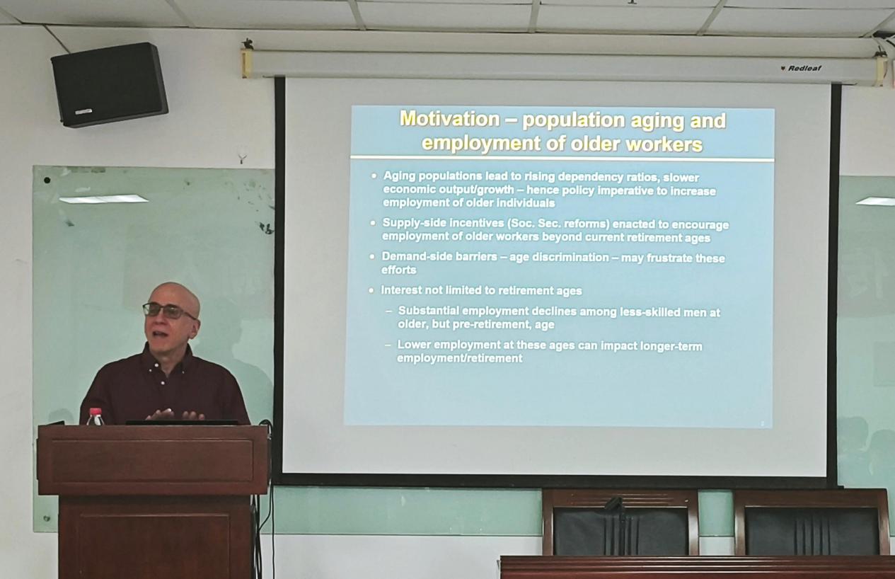 2025年4月2日下午,欧洲杯 “京师经管·名家讲坛”(第143期)在后主楼1726会议室举行。本次讲座邀请到了加州大学欧文分校的David Neumark教授,讲座以“Help Really Wanted? The Impact of Age Stereotypes in Job Ads on Applications from Older Workers”为主题,学院教师、硕博生共30余人参加此次讲座,讲座由经济系何浩然教授主持。