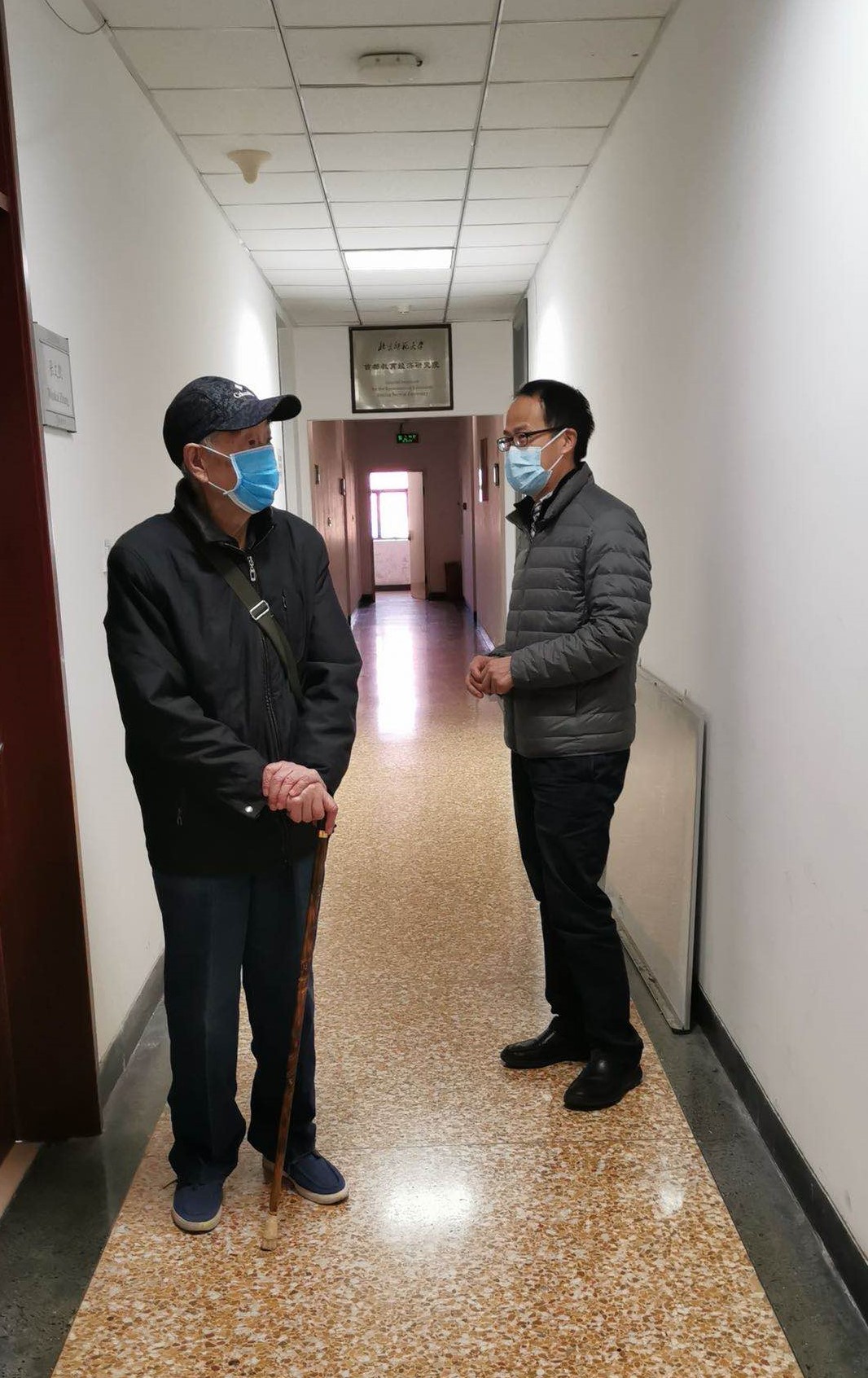 八十多岁高龄的王善迈老师依然心系学生们的学业课程安排,每周到办公室录制课程、查询材料。学院黄良进老师主动承担起往返接送的任务,实际解决了王老师到校不便的困难。学院孙志军书记也前往办公室看望王善迈老师,表达了对王老师身体健康、防疫安全的关心。